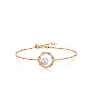 18K Rose Gold Akoya Pearl Diamond Bracelet