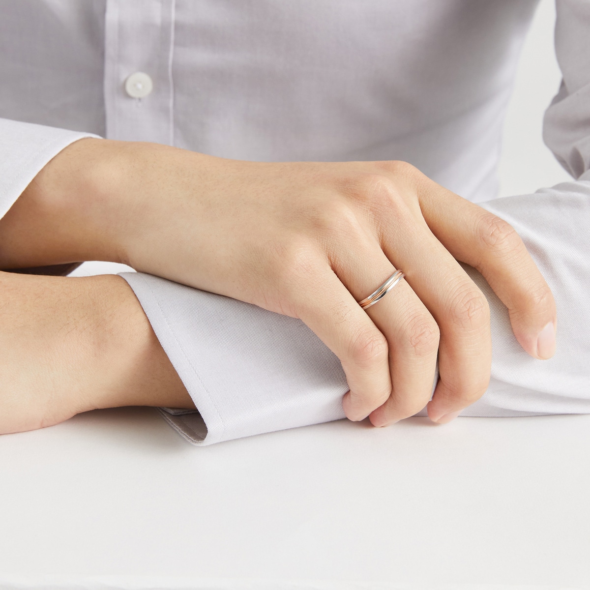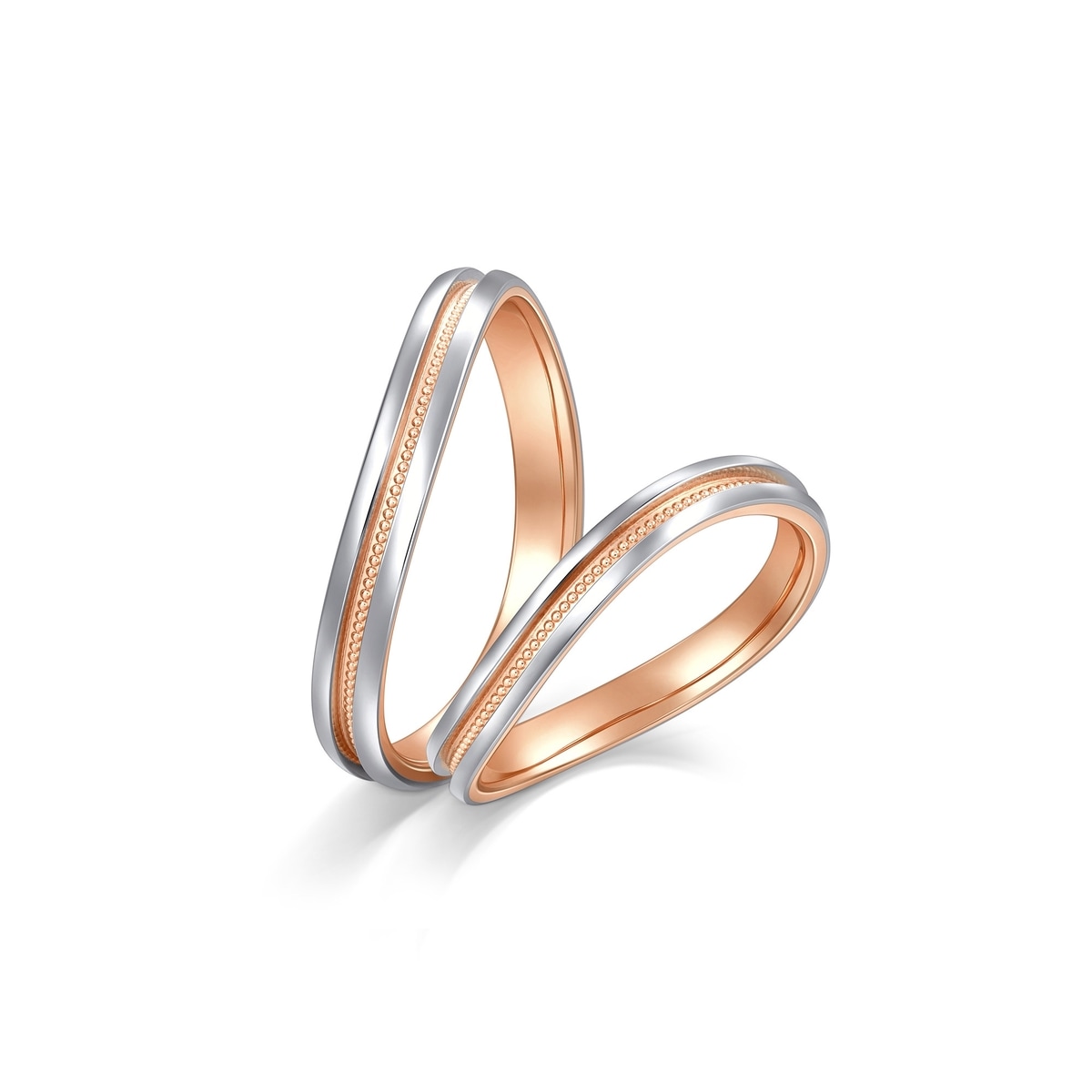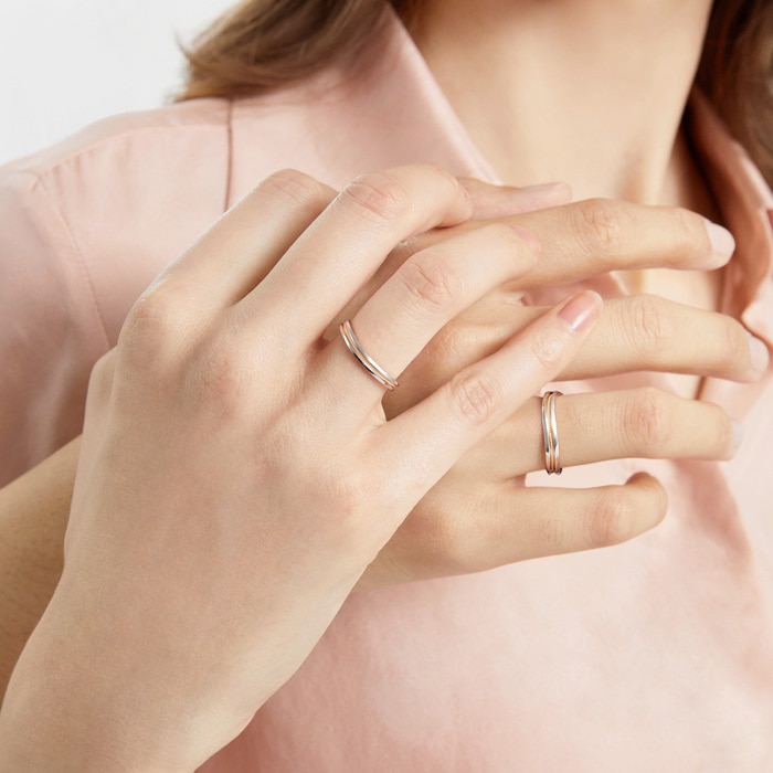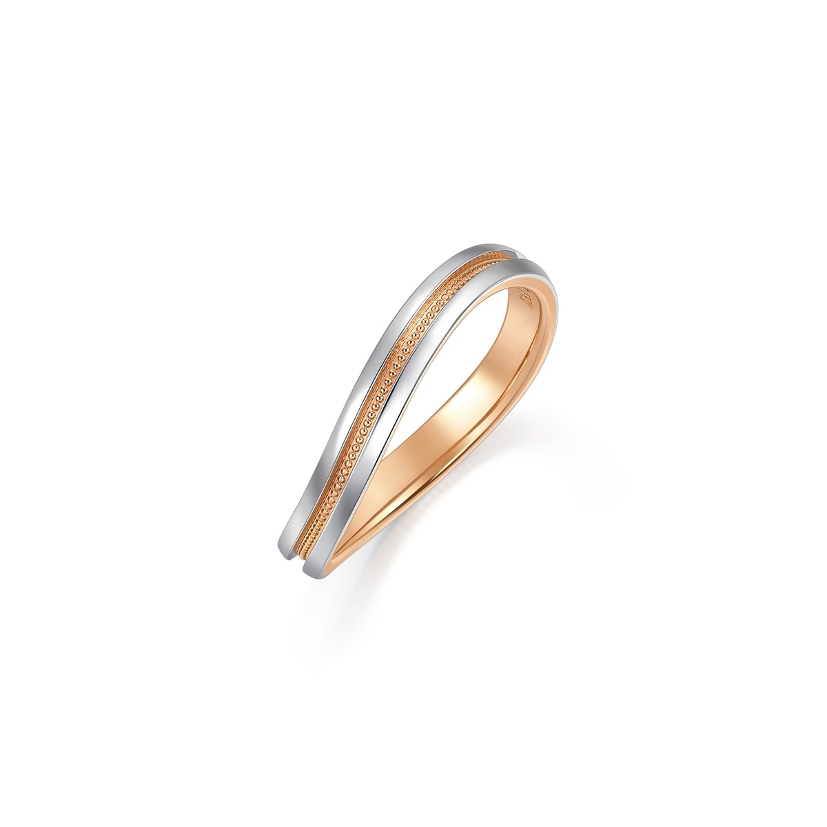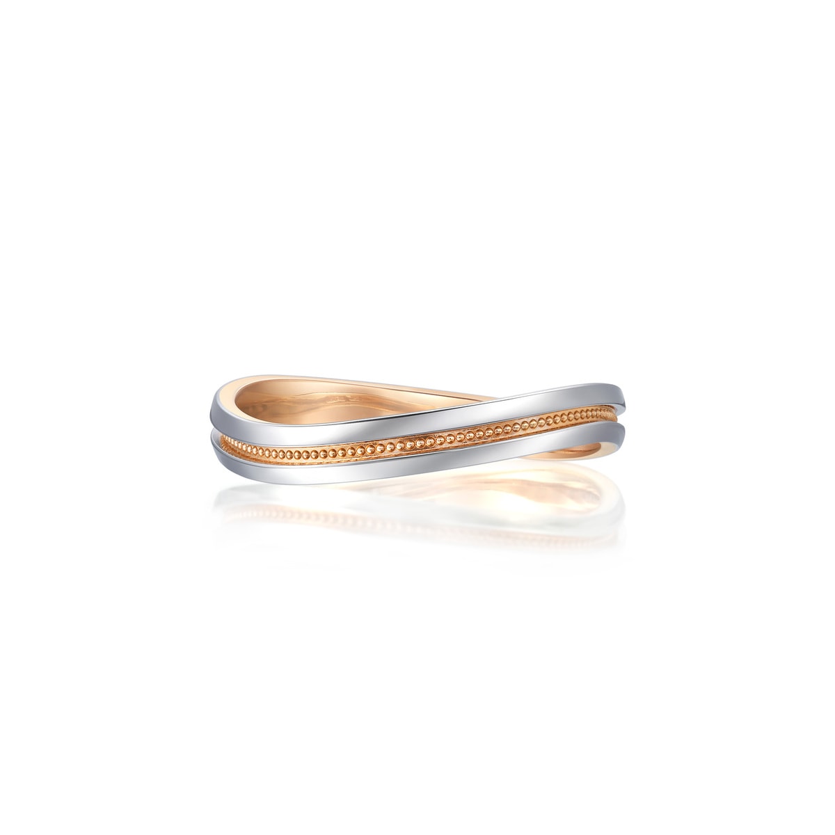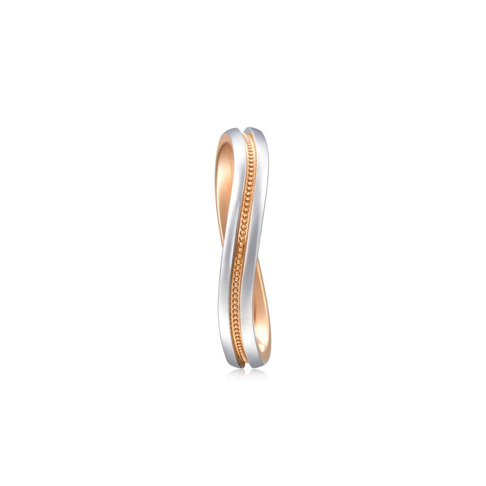 Chow Sang Sang - Inspired by “Majesty”, this diamond ring in 18K gold and 950 platinum features the wavy line design accented with a beaded row in rose gold. The enhanced layering adds a versatile chic to any look.