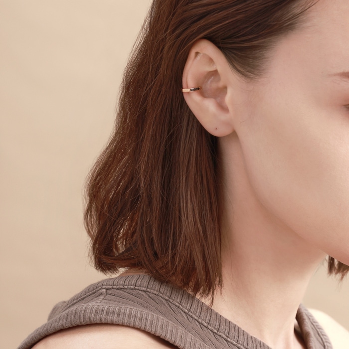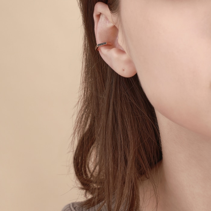Deconstructing and reconstructing the brand logo “M”, the neat design is blended with angling geometric flair. This 18K black gold single ear cuff crowns everyone’s multi-faceted versatility by mixing & stacking earrings spontaneously.