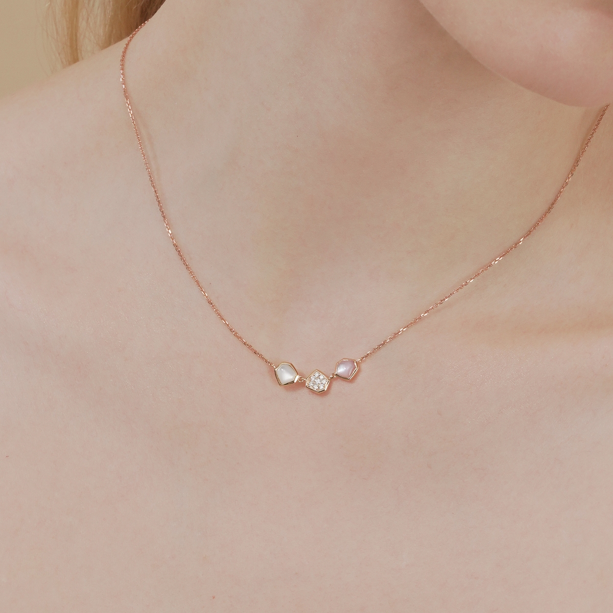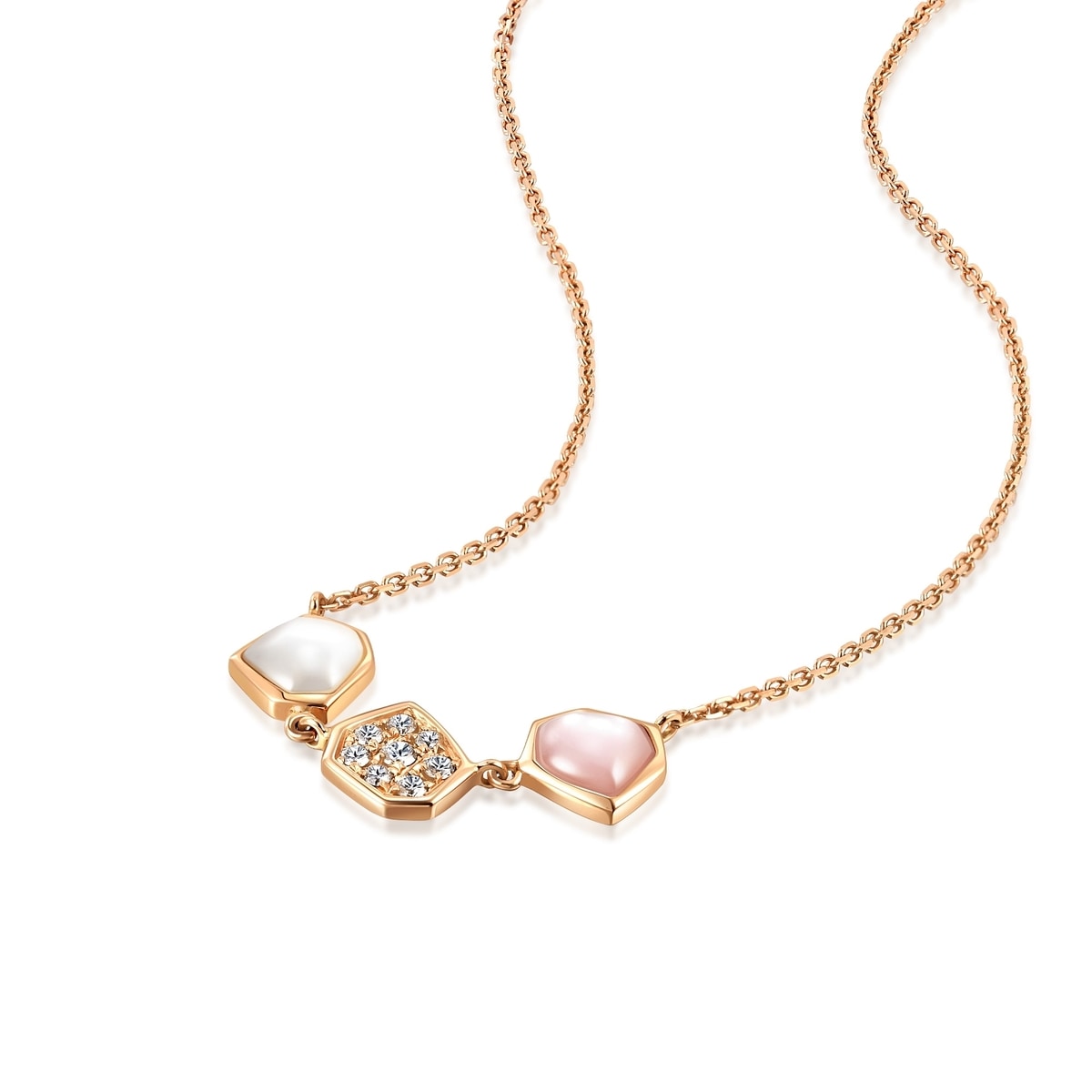 Chow Sang Sang - Irregular diamond-shaped 18K rose gold necklace joins various coloured mother of pearls together, foregrounding the purest beauty of this iridescent material. Adorned with dazzling diamonds, it reflects the confident elegance of contemporary ladies.