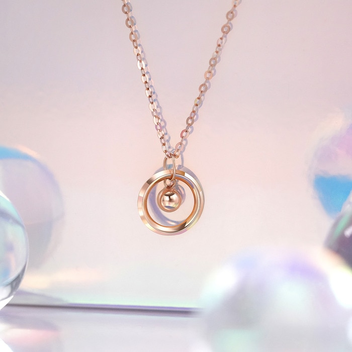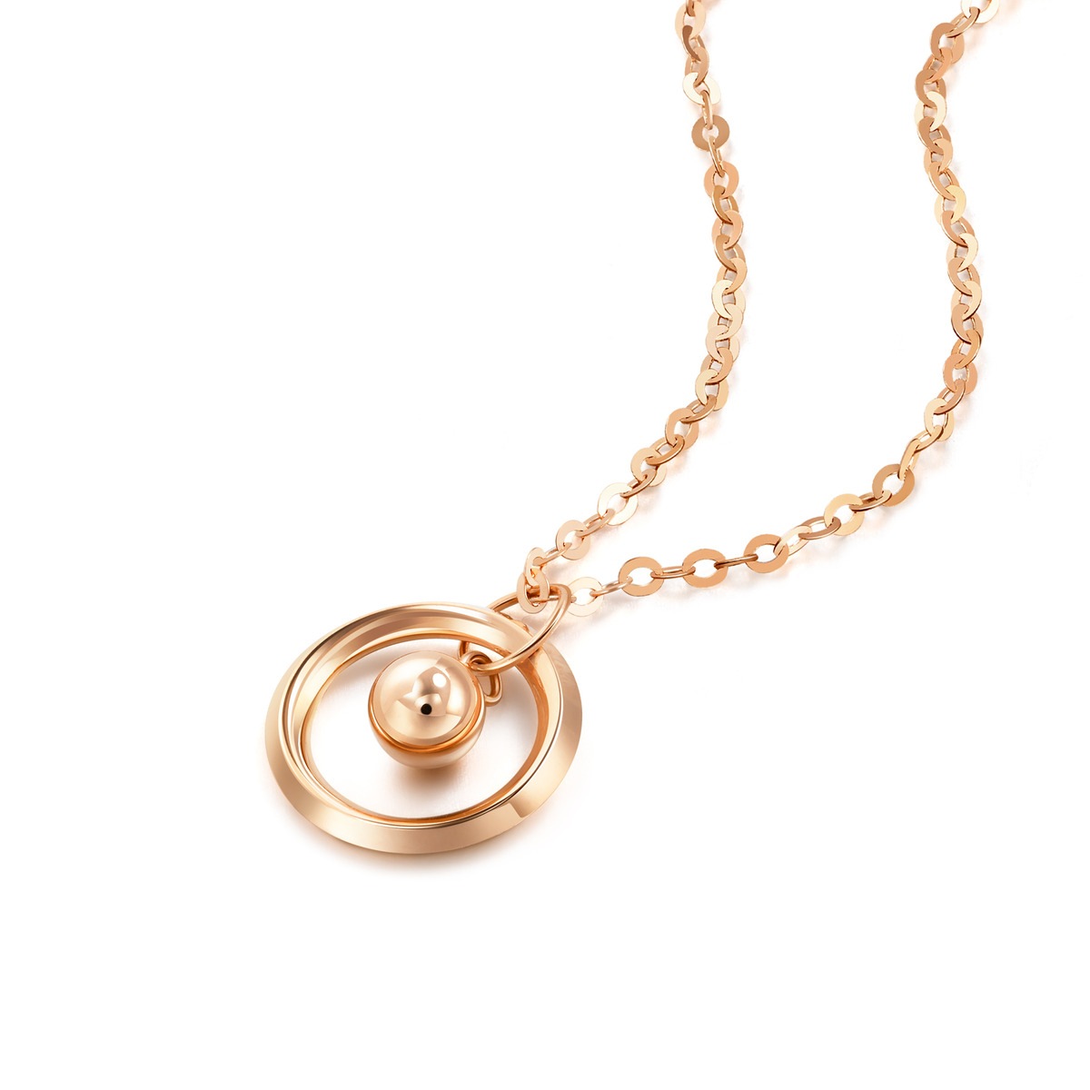 Chow Sang Sang - A mini bead is daintily hanging within the circular frame of the pendant of this 18K red gold necklace. The ultra-fine frame is forged with unparalleled craftsmanship, which makes it even smoother and shinier than handcraft, its surface is polished with CNC technique.