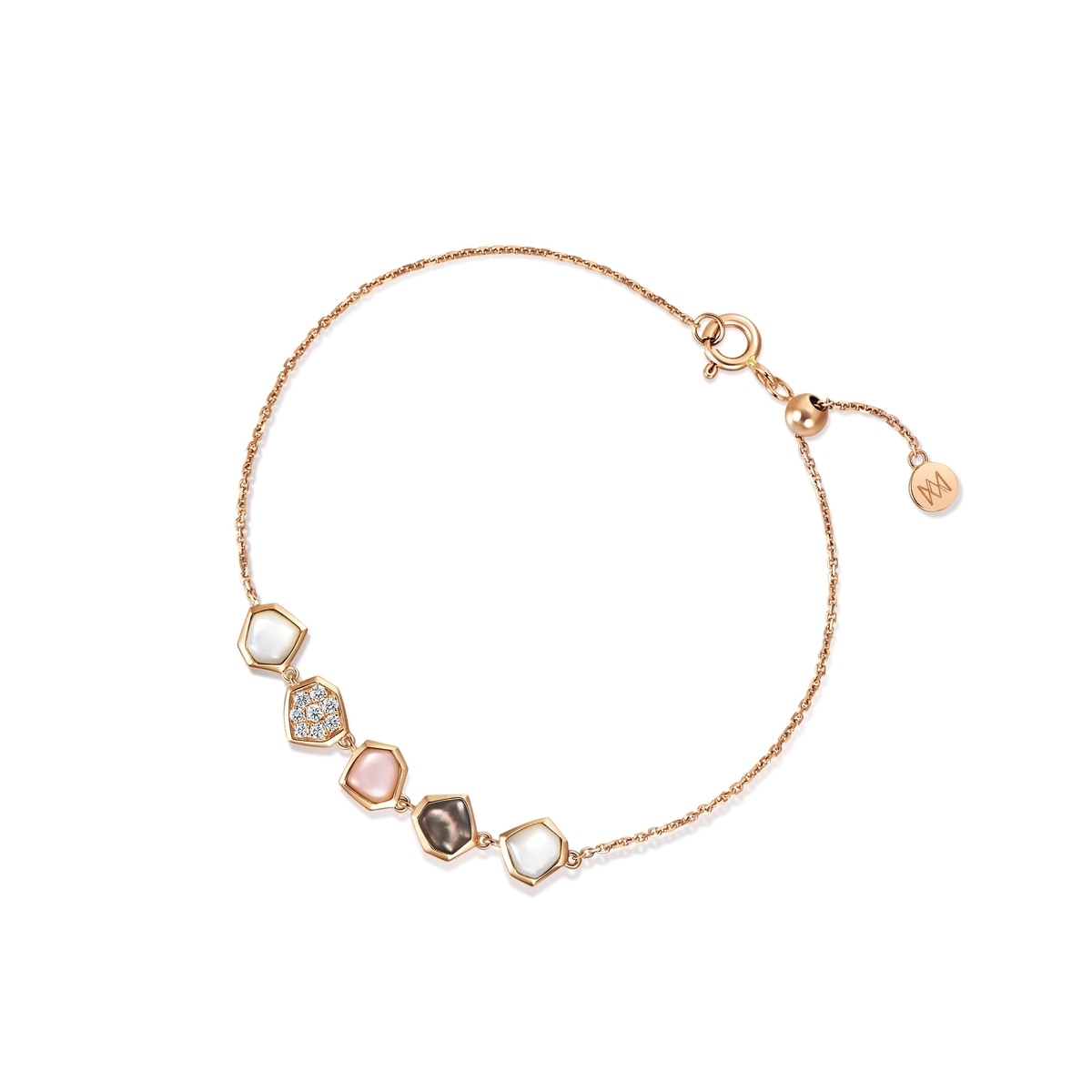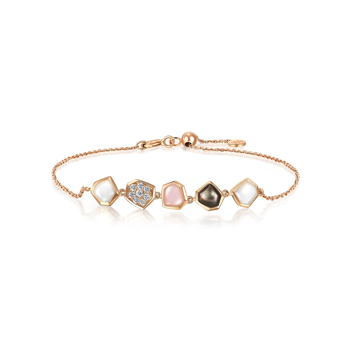 Chow Sang Sang - Irregular diamond-shaped 18K rose gold bracelet joins various coloured mother of pearls together, foregrounding the purest beauty of this iridescent material. Adorned with dazzling diamonds, it reflects the confident elegance of contemporary ladies.