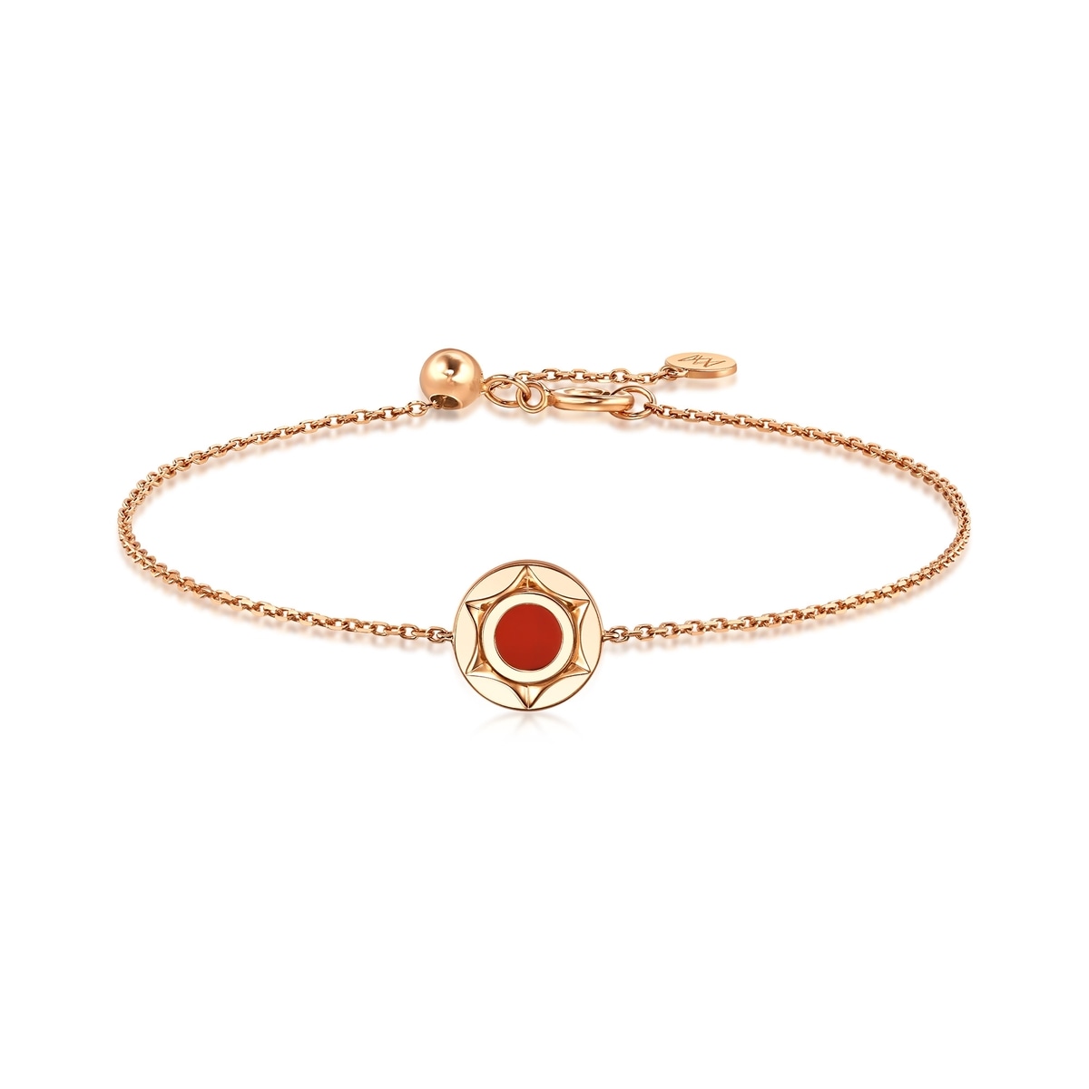 Chow Sang Sang - Also featuring a lucky six-pointed star motif outlined by dazzling diamonds, this 18K rose gold chalcedony bracelet embellishes a carnelian that represents joy, health and happiness. The stunning design can be worn in reverse, allowing more flexibility in styling. The warm hues of carnelian brighten up the versatile piece suitable for any occasion.