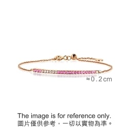 18K rose gold bracelet is set with glistening pink sapphires – symbolic of romantic elegance. Juxtaposed with diamonds in between, layers of lustrous colours are manifested. Its plain beauty is the perfect match for all your preferred attires.