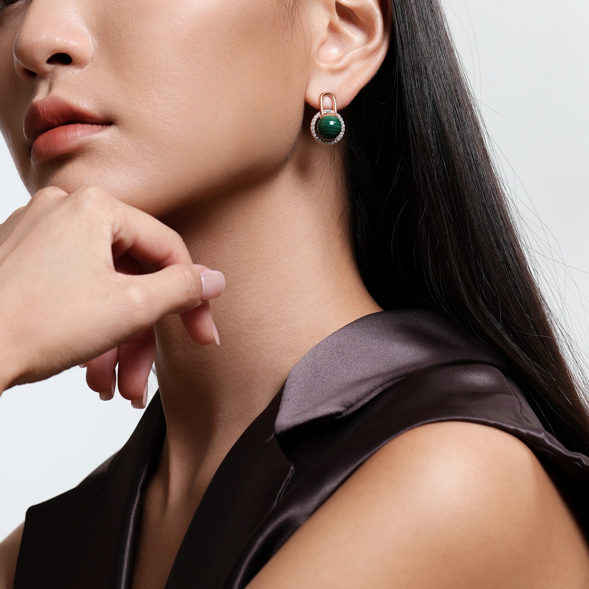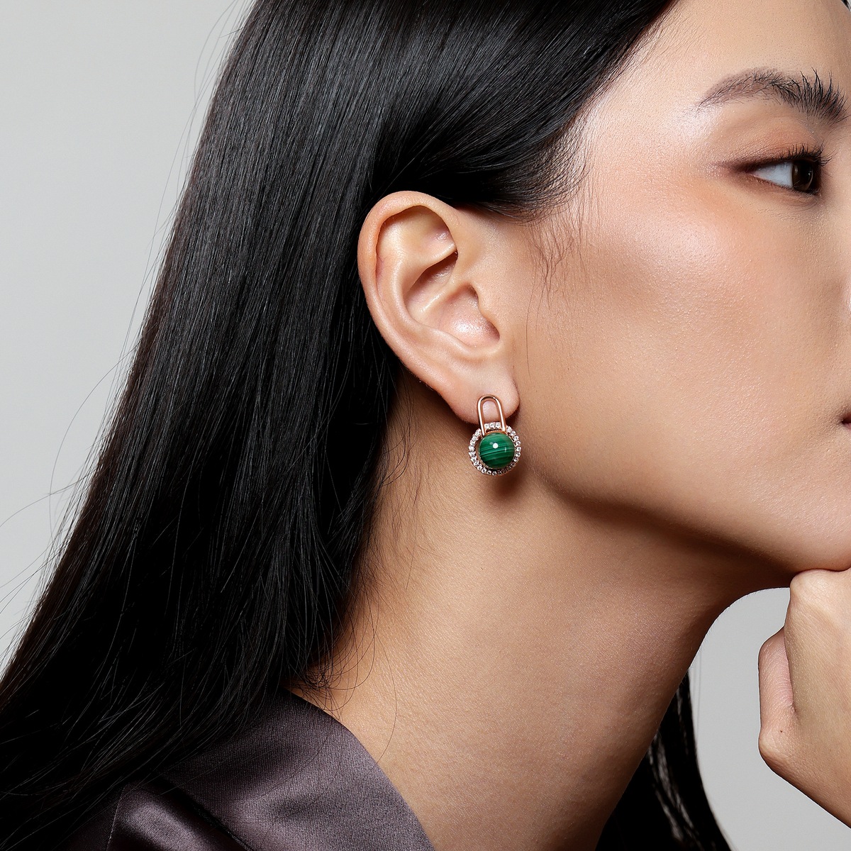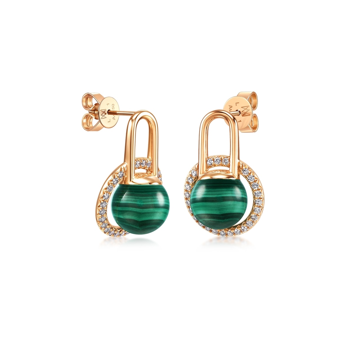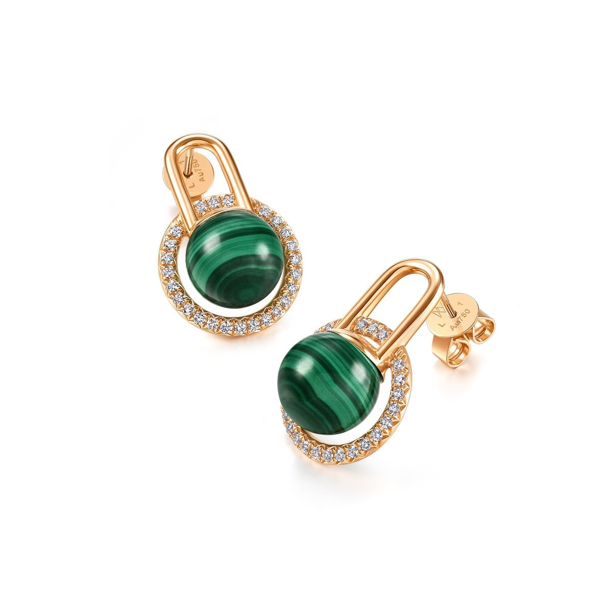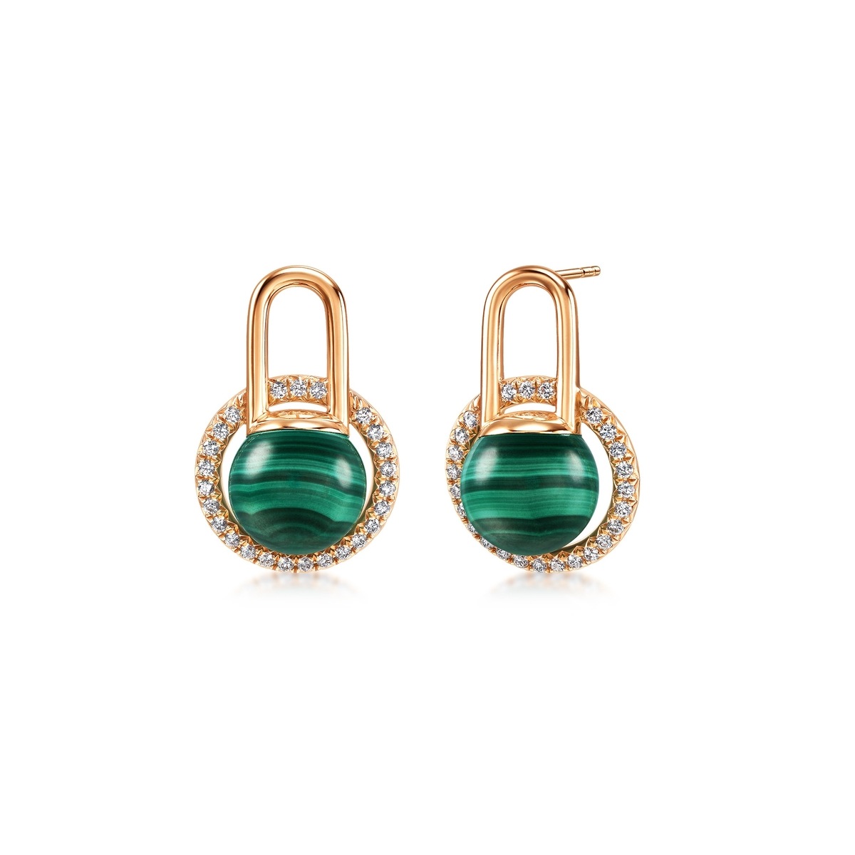 18K/750玫瑰金孔雀石耳環