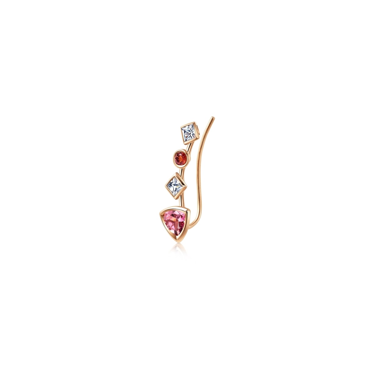 The geometric design of this 18K rose gold single earring features a series of gemstones in various shapes – garnet, transparent topaz and pink tourmaline – as if there are four distinct earrings. The playful and bold colour palette exudes an air of unrestrained vitality.