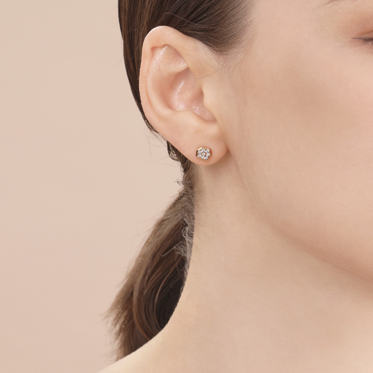 The cosmopolitan charm of this single diamond earring is galvanized by the irregular and unbalanced geometric lines, exhibiting women's multi-faceted charisma and self-confidence. Mix & match any Harmony single earring to create your own style.
