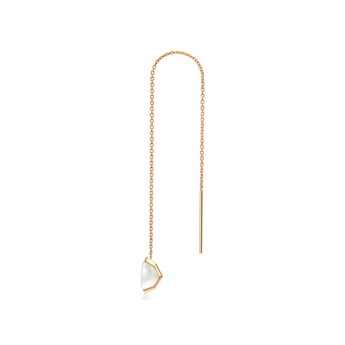 The uniquely irregular cutting remarks the artistry and craftsmanship of our artisans and foregrounds the purest beauty of mother of pearls in this 18K rose gold single earring. This incredibly elegant single earring featuring in white mother of pearl is beautifully articulated to move with the wearer.