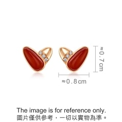 Chow Sang Sang - 18K rose gold earrings, with two interweaving sprouts forming a heart-shaped pattern. One sprout is adorned with a red carnelian gemstone, while the other is embellished with diamonds. The overlapping leaves express abundant love. The red carnelian exhibits warm tones, symbolising joy and happiness.