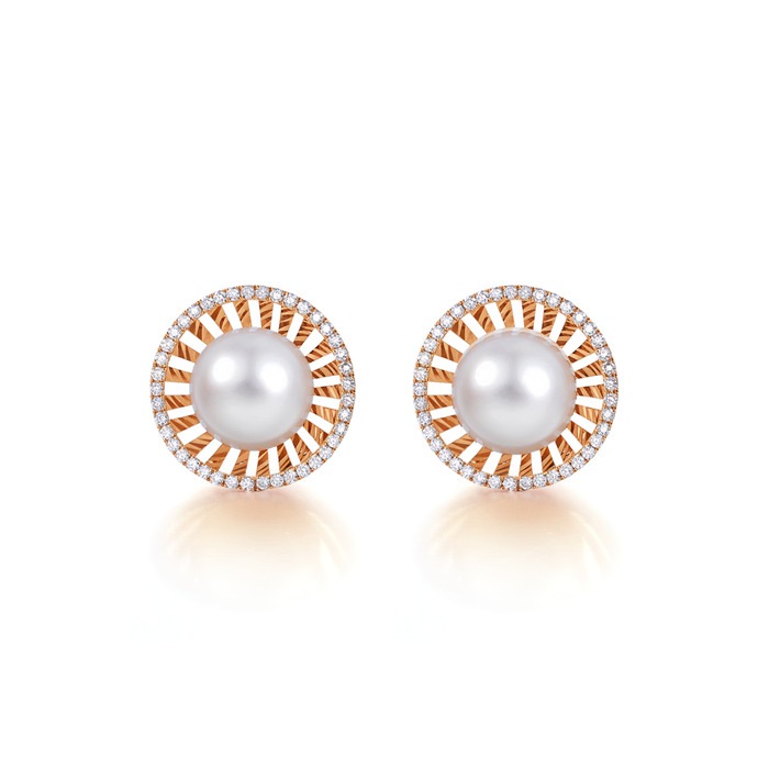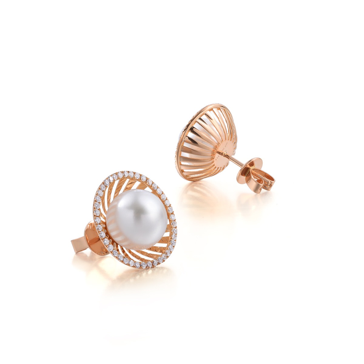 18K/750 Gold (Rose) Freshwater Cultured Pearl Earrings