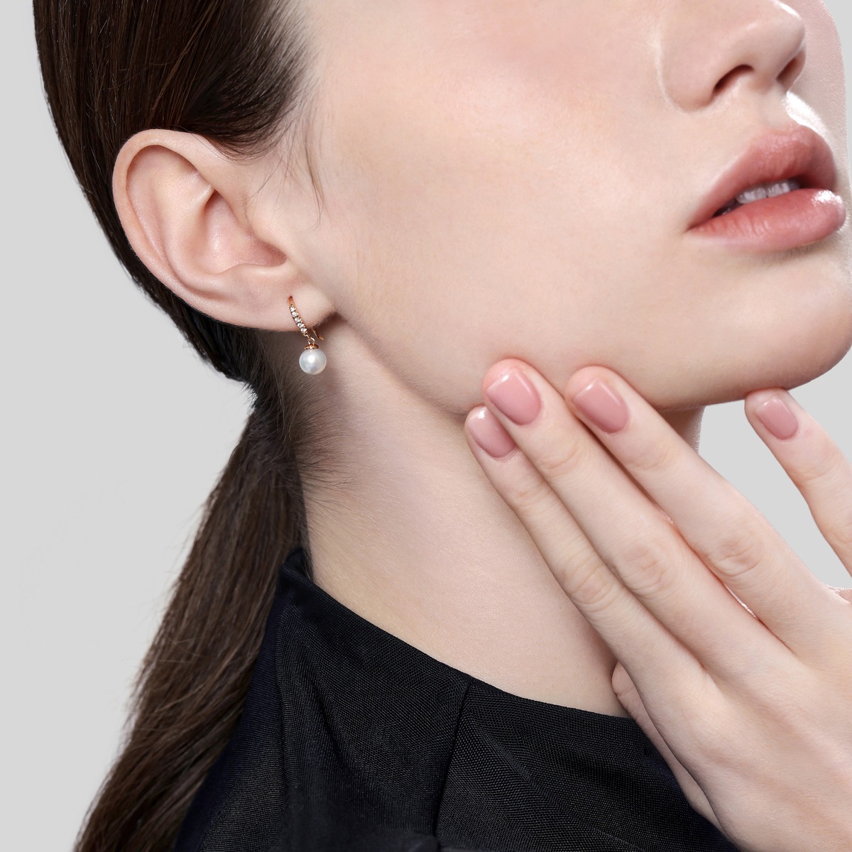 Chow Sang Sang - These 18K red gold pearl and diamond earrings feature a minimalist design that showcases contemporary aesthetics. The natural pearls and sparkling diamonds add an extra touch of elegance and radiance to your everyday look.