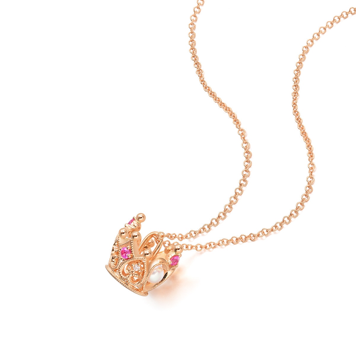 Chow Sang Sang - Crown-shaped 18K red gold necklace radiates delicate exquisiteness, posing a stark colour contrast with the pure translucence of the Akoya pearl, emanating amiable gentility. Embroidered by the pink sapphires, the pendant honours the dearest person with the highest regard and recognition, elevated splendor.