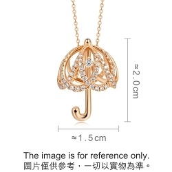 Umbrella symbolizes fulfillment and unification, and represents shielding your beloved from wind and rain. This umbrella-shaped 18K Gold (Red ) pendant is configured with various hearts, beautified by the central heart adorned with small round diamonds.