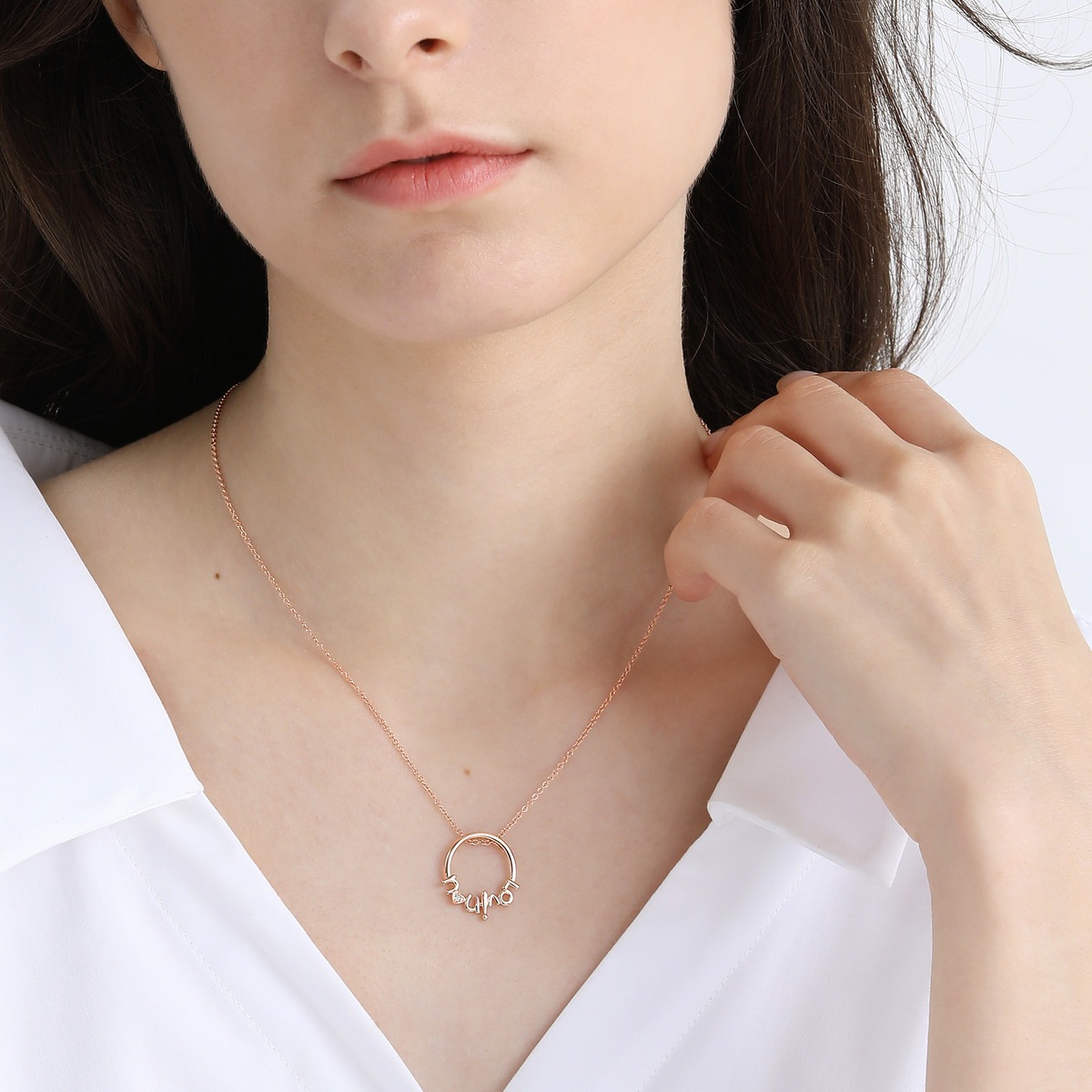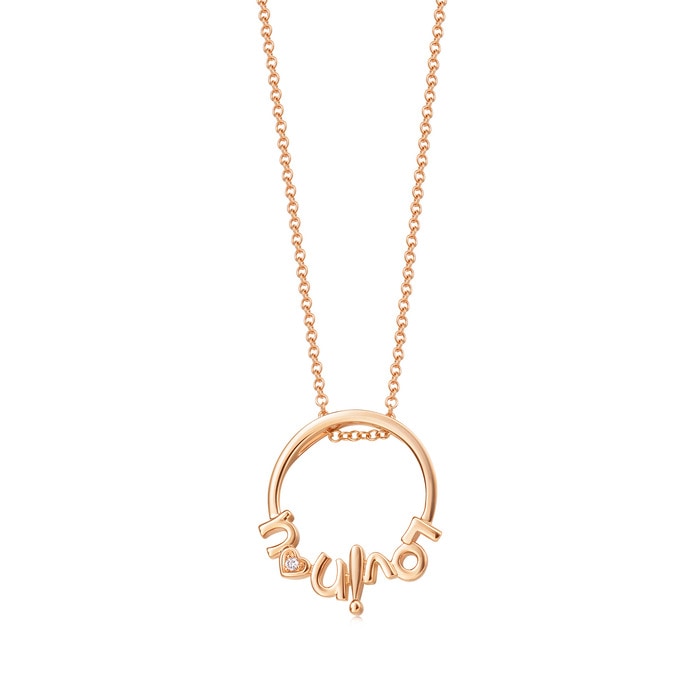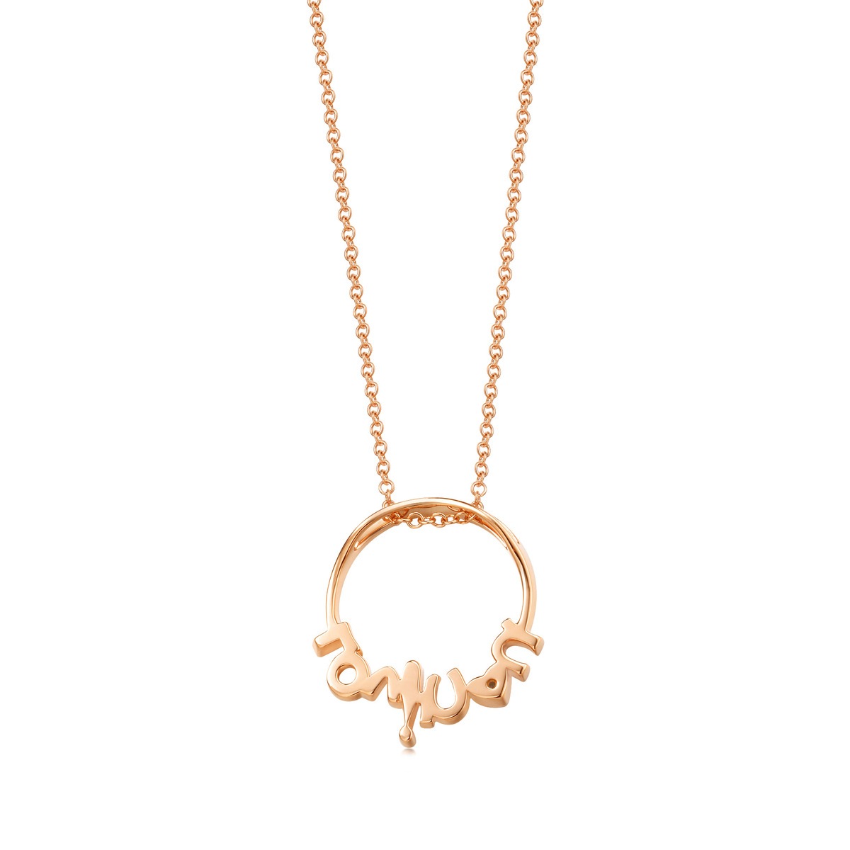 An inverted version of「loving u」, 「nu!^o7」carries a classic love song as well as sincere love – with some characters set with ravishing round diamonds, this elegant necklace sparkles with love.