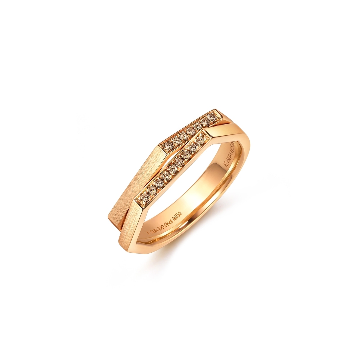 Deconstructing and reconstructing the brand logo “M”, the neat design is blended with angling geometric flair. This 18K red gold double ring is bound irregularly; adorned with ravishing brown diamonds, it crowns everyone’s multi-faceted versatility by mixing & stacking rings spontaneously.