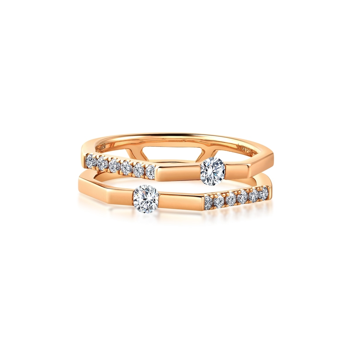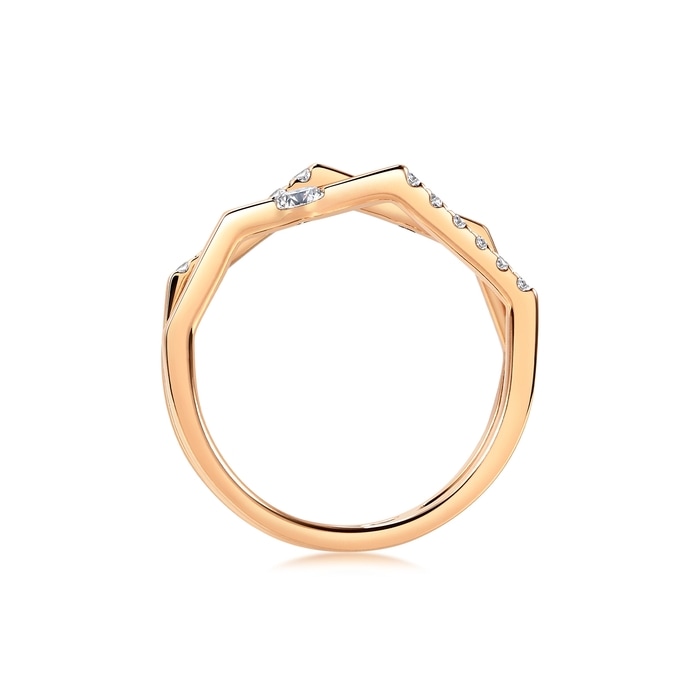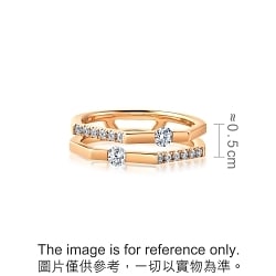 Chow Sang Sang - Deconstructing and reconstructing the brand logo “M”, the neat design is blended with angling geometric flair. This 18K rose gold double ring is bound irregularly; adorned with ravishing diamonds, it crowns everyone’s multi-faceted versatility with immeasurable honour.