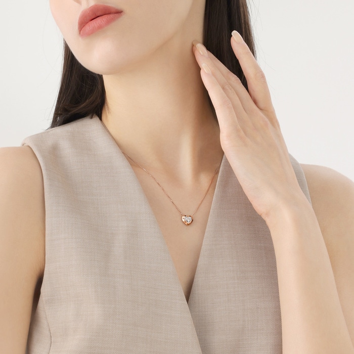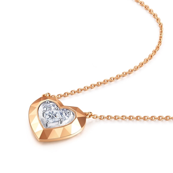 Chow Sang Sang - The 18K red and white gold diamond necklace features the exclusive Lady Heart design which is crafted with two half-moon diamonds and one princess-cut diamond. Perfect to be worn in multiple ways, it embodies the many facets of a lady's character.
