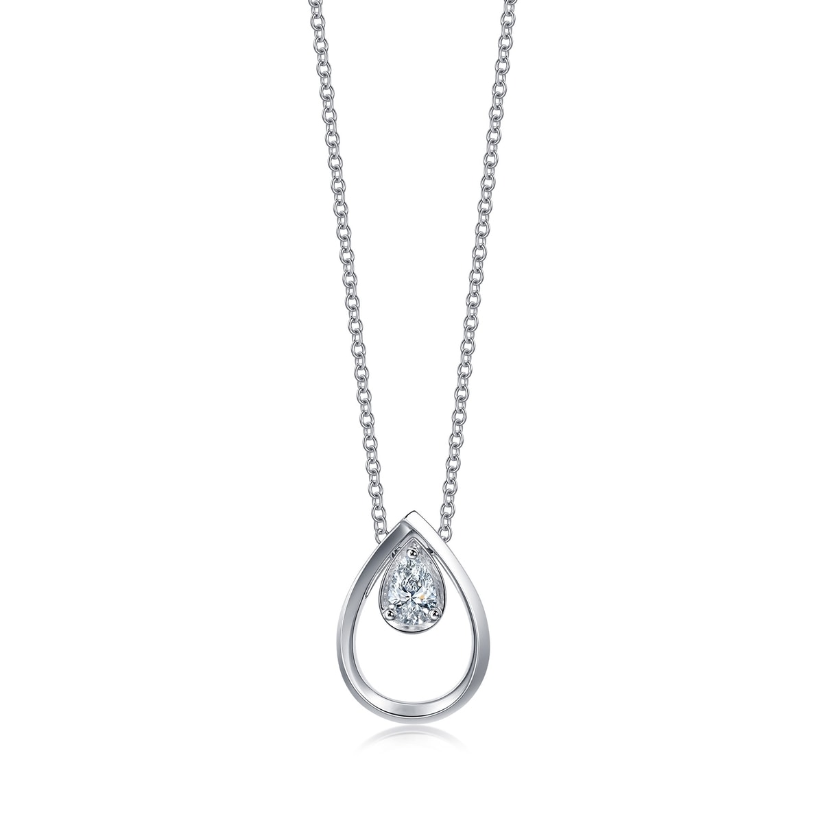Chow Sang Sang - This 18K white gold necklace features the pear-shaped main diamond in fancy cut and the multi-cut frame to reflect light in different angle for escalated brightness and the beauty of modern women. The main diamond and frame can be worn solo or together for various styles.