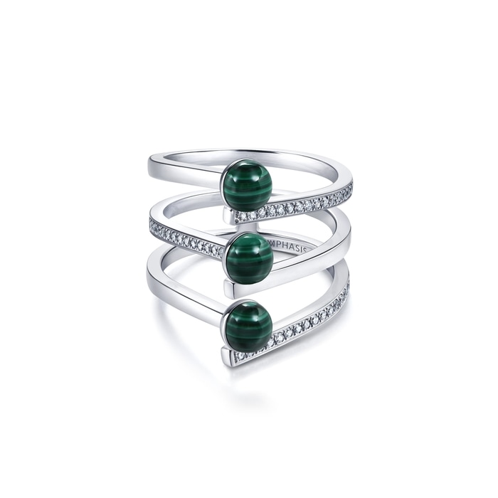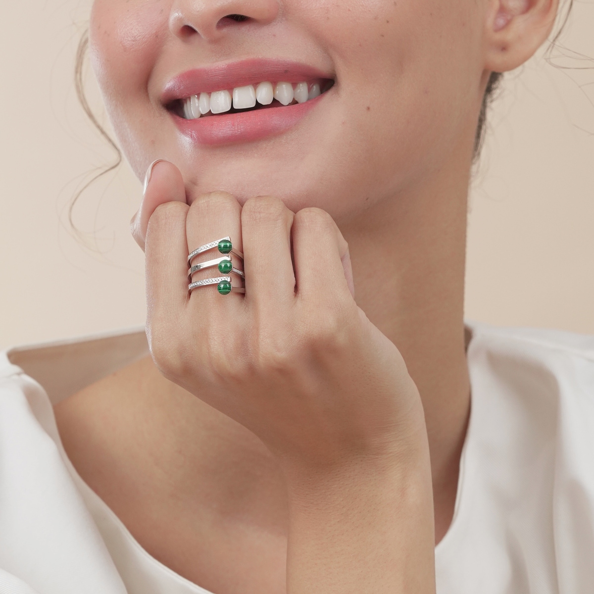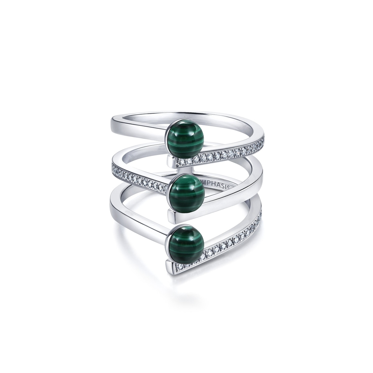Accentuated by the adorning diamonds, the irregular arrangements of this Malachite ring give your daily attire with starry creativity.