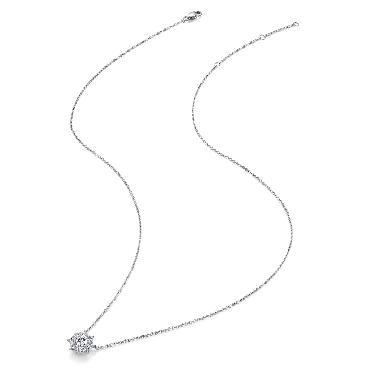 This 900 platinum and diamond necklace radiates brilliant love. Featuring our Infini Love Diamond™, the eight-pointed star design features eight promises of love and companionship. Crafted with 3EX PLUS cutting, the 'Octagonal star with 8 Hearts and 8 Arrows' is an iconic symbol to represent the symmetric cut that unleash brilliance. Capture your love to yourself or your better half with this stunning piece.