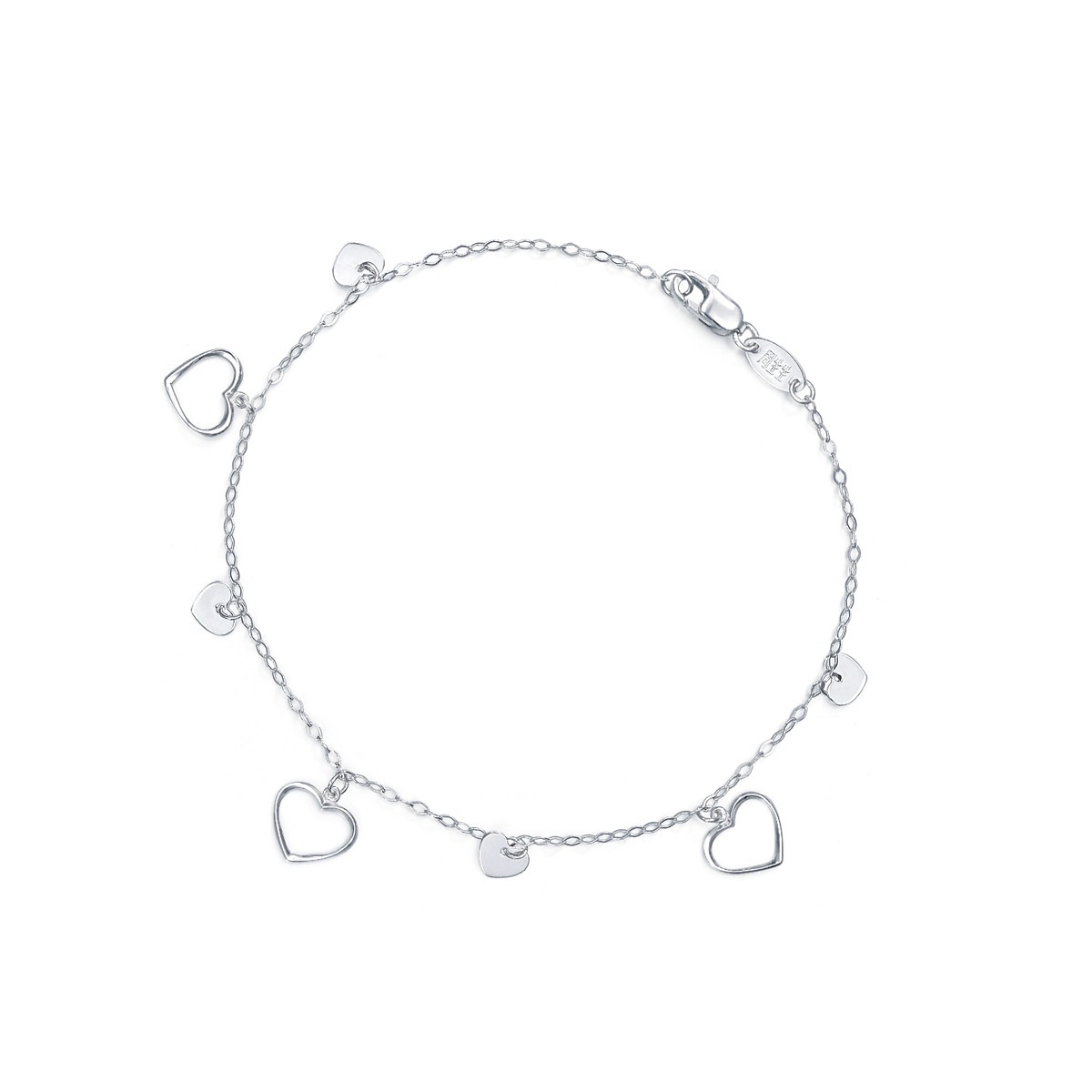 A contemporary bracelet with hearts and heart frames of various sizes.