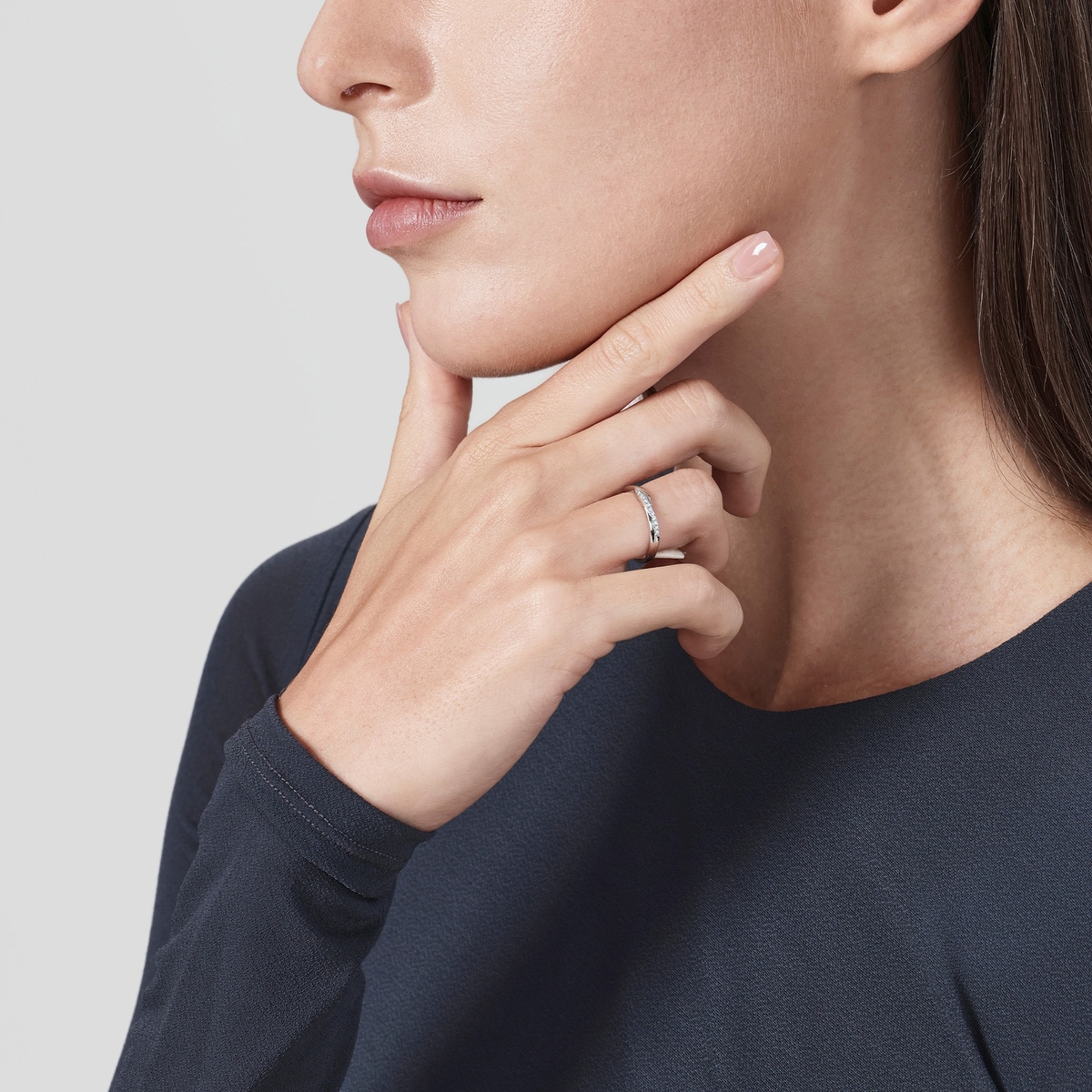 Chow Sang Sang - This 950 platinum ring features a flowing, wavy design adorned with sparkling diamonds that evokes the captivating romance of the starry sky. Simple yet stylish, it bears witness to every cherished moment between lovers and is suitable for an elegant, everyday style.