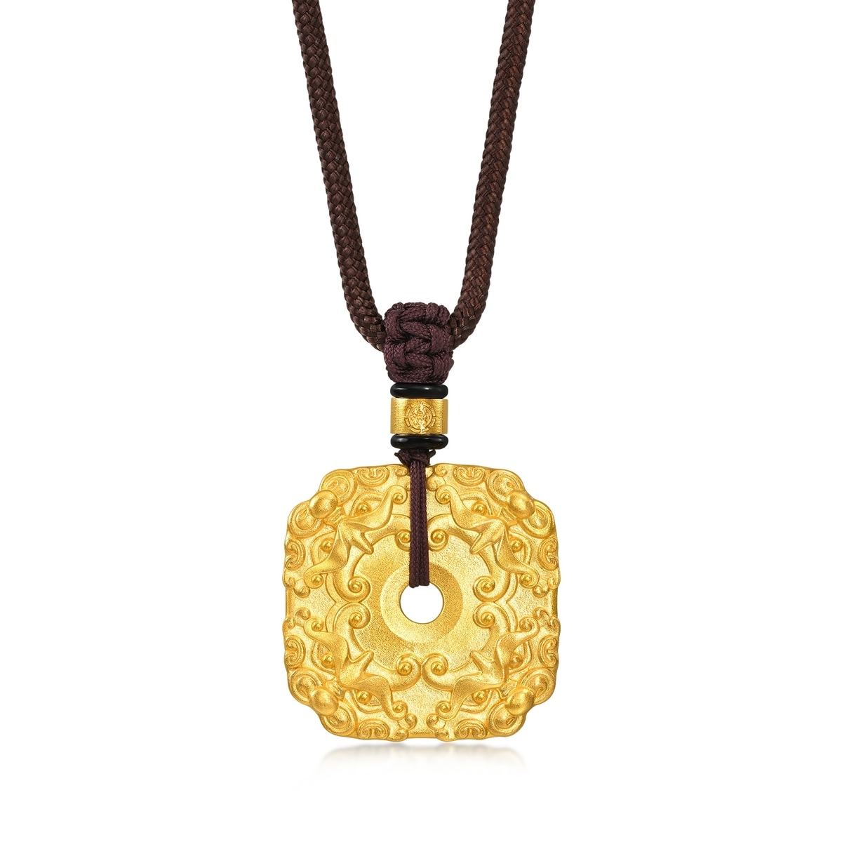 Chow Sang Sang - This gold necklace takes inspiration from the "wealth-attracting Pixiu" and is crafted using traditional goldsmith techniques. The surface is treated with sand blasting to present a delicate matte finish. The Pixiu, facing in all four directions, symbolizing wealth and auspiciousness.