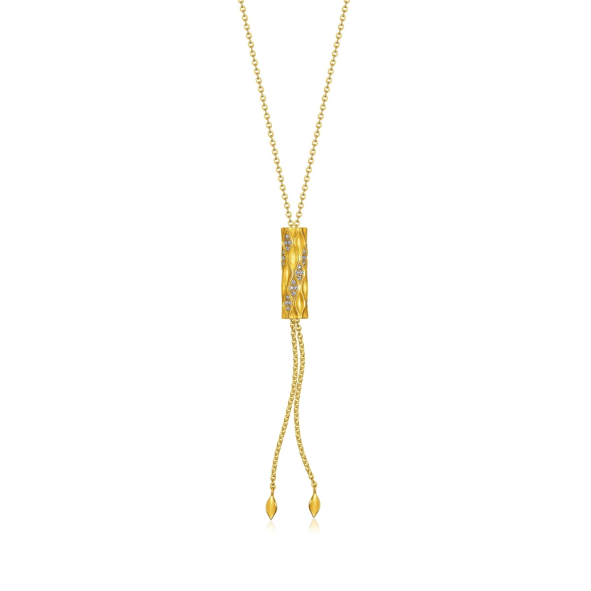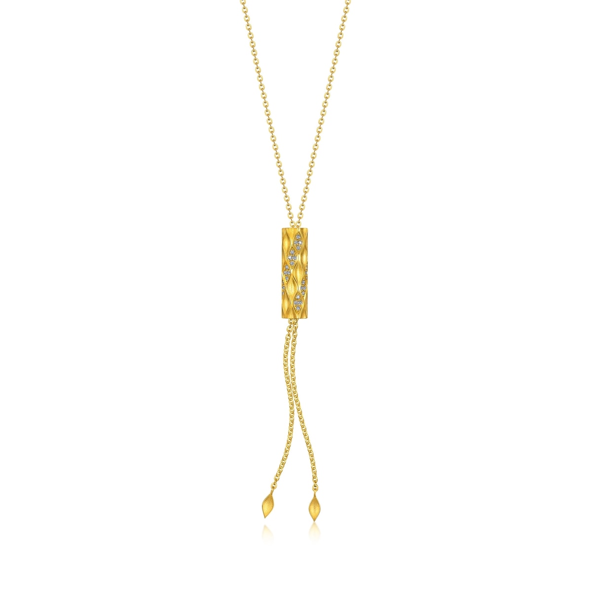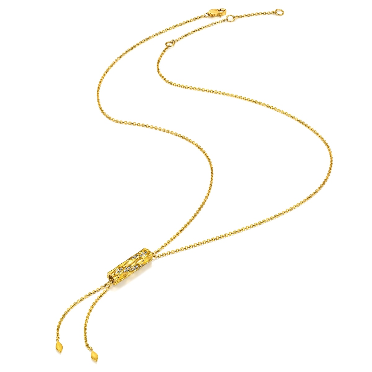 Chow Sang Sang - YuYu gold collection redefines traditional gold jewellery by blending Eastern aesthetics and artisanal techniques, to create pieces as smooth as silk. The addition of micro diamond settings adds a shimmer, while seamless layering extends the fish motif, highlighting the subtle elegance of Eastern philosophy. The pendant design features a distinctive rotating element, radiating ultimate elegance.