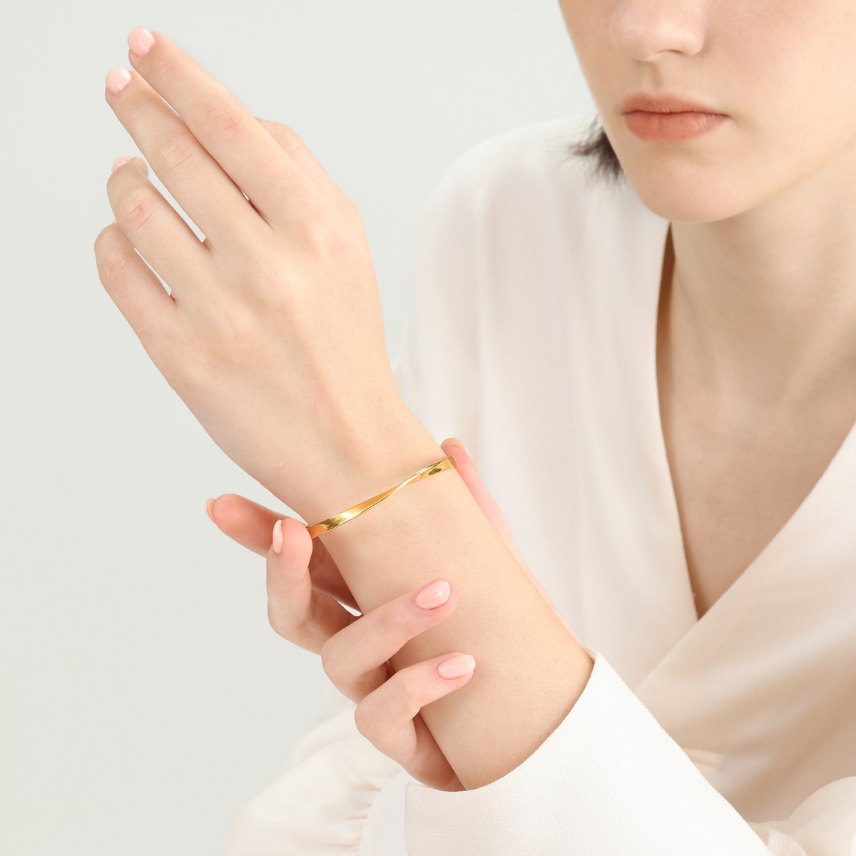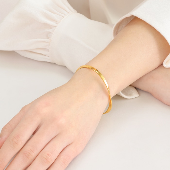 Chow Sang Sang - The solid gold bangle incorporates 5G gold technique, features a unique "Möbius strip" structure, with clean and sleek lines, injecting a fashionable touch into everyday styling.