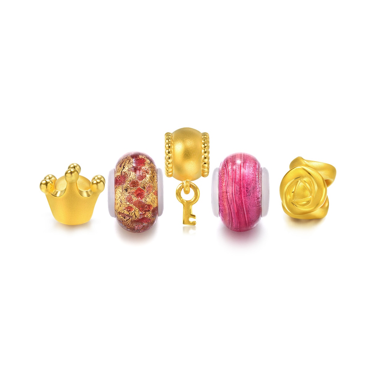 Rose Princess' set. A lavender bracelet with the Charme pendants princess crown, rose, key and two Italy-imported Murano glass charms. Charme Silicone Inner-layer - (Hong Kong, China: Short-term Patent Registration No.HK1195193 / Mainland China: Utility Model Patent Registration No. ZL201420392212.4 ) Murano Glass Silicone Inner-layer - (Hong Kong, China: Short-term Patent Registration HK1196741 / Mainland China: Utility Model Patent Registration No. ZL201420517714.5 / Macau, China: Utility Model Patent Application No. U/000159)