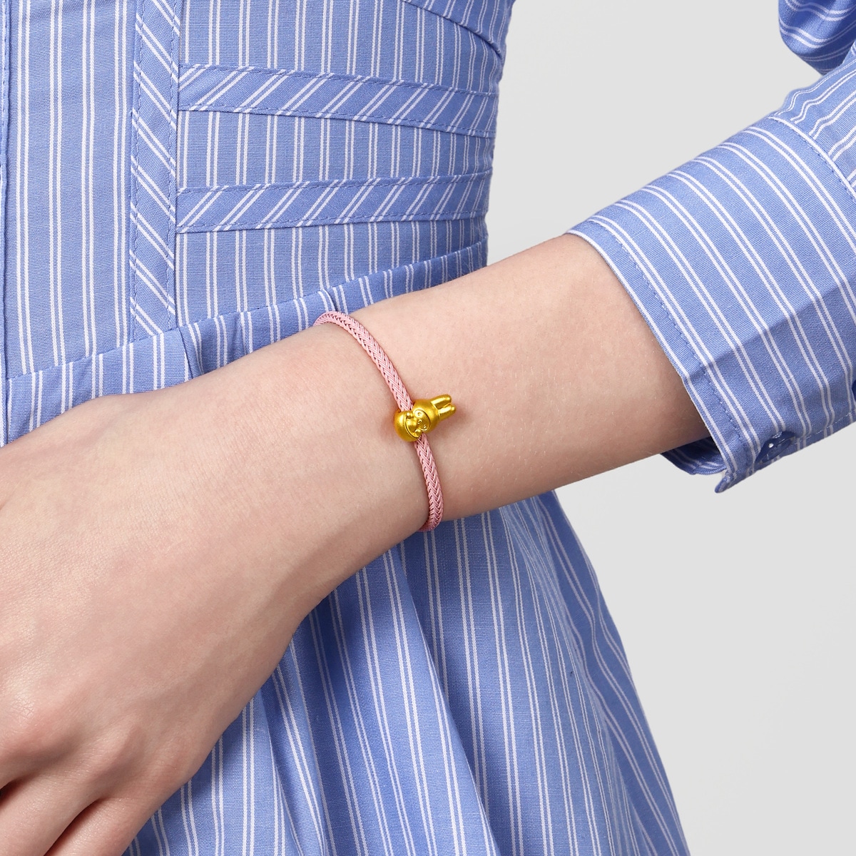 周生生足金串珠以My Melody為主題,乖巧可愛的My Melody緊抱着金元寶,寓意財源廣進、招財進寶。串珠以精緻工藝呈現細膩質感,造型飽滿圓潤、活潑生動,集可愛、時尚與祝福於一身。