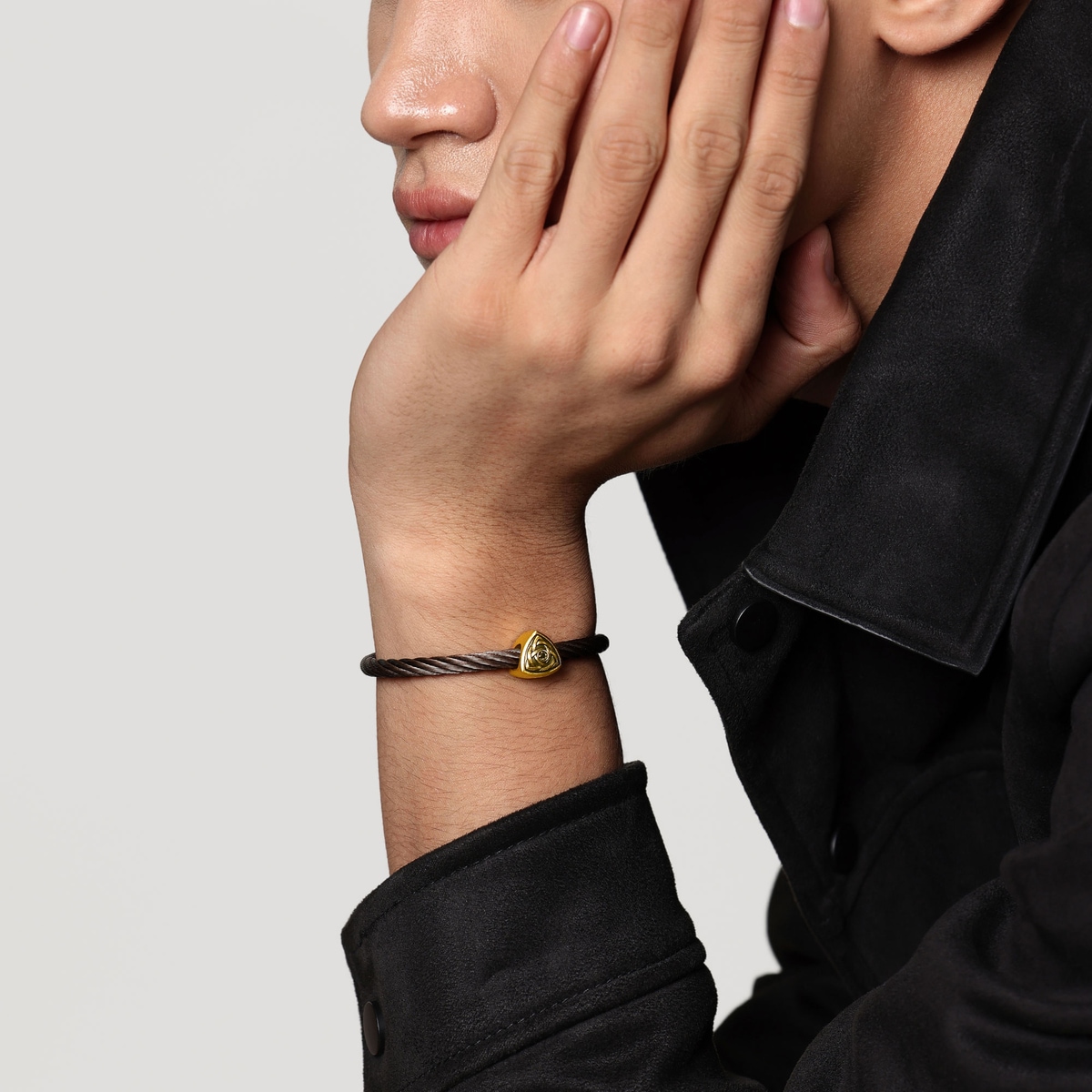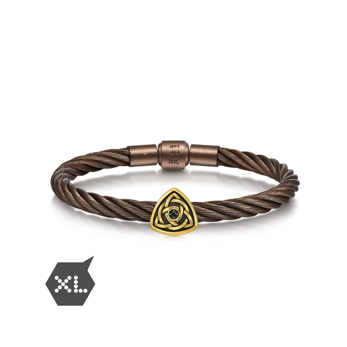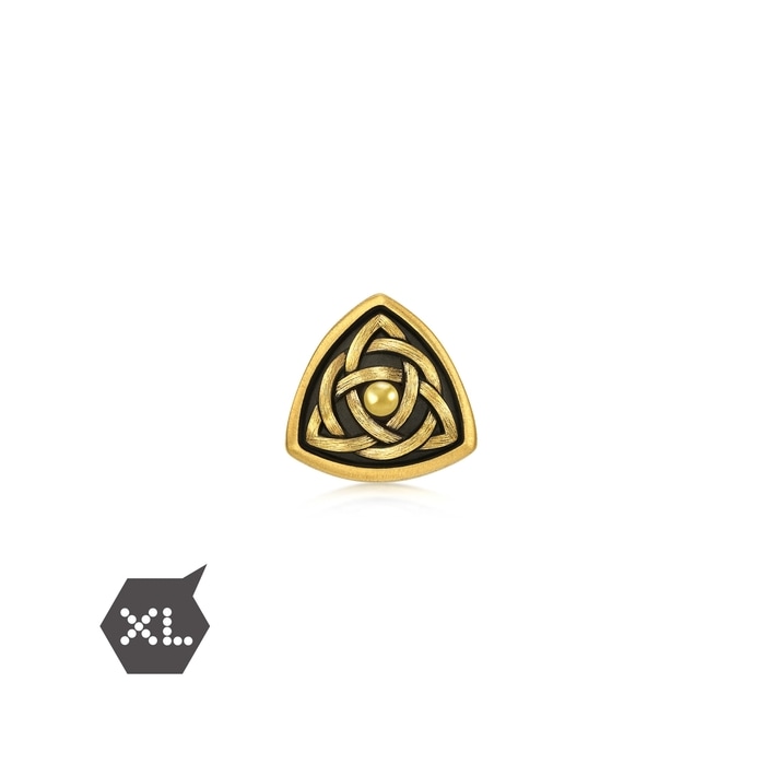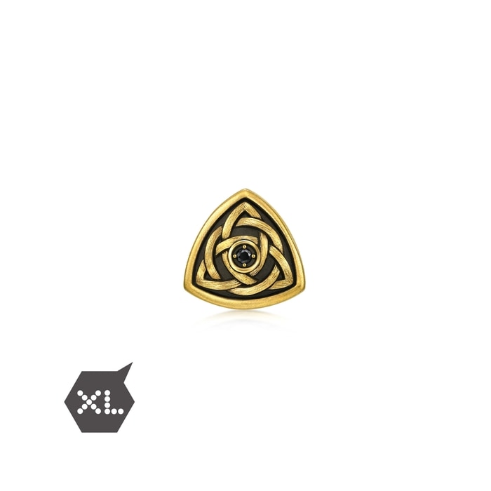 Chow Sang Sang - This gold charm is inspired by the "Celtic Triquetra", crafted with outstanding gold electroforming technique and black rhodium electroplating to showcase its intricate textures. Triquetra consists of three intertwined spirals forming an infinite loop, symbolising blessings and protection. Adorned with a black diamond in the center, it radiates a dazzling cool black brilliance.