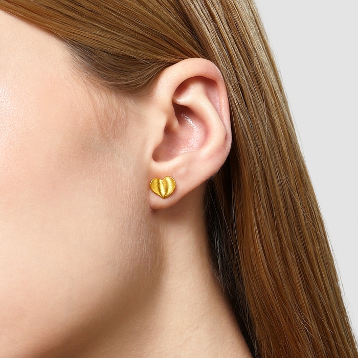 Crafted using the delicate art of gold brushed finishing by Chow Sang Sang, the piece boasts a texture as smooth as satin, with intricate workmanship that presents a unique sheen and feel. The romantic heart-shaped design, with its subtle undulations, symbolises a joyful heart, bringing forth beautiful blessings.