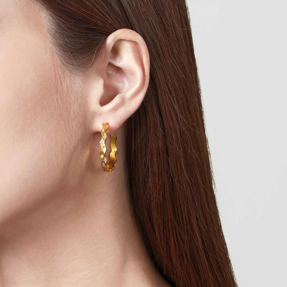 Chow Sang Sang - Using advanced CNC cutting technology, the design of YuYu gold collection breaks from traditional gold jewellery, achieving remarkable three-dimensional and silky finish through fine sand blasting. The addition of micro diamond setting adds a shimmer, while seamless layering extends the fish motif, highlighting the subtle elegance of Eastern philosophy.