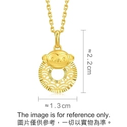 Chow Sang Sang - This gold pendant features a cartoon zodiac animal, crafted with the hard solid gold technique, showcasing a finely detailed three-dimensional monkey shape, adorned with floral and water wave patterns, symbolizing good luck, brightness, wisdom, and eternity.