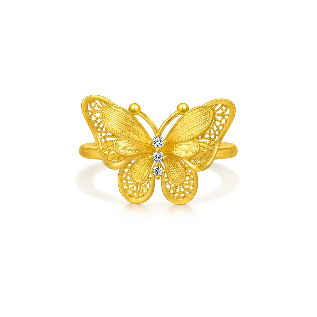 999 Gold Diamond Butterfly Ring