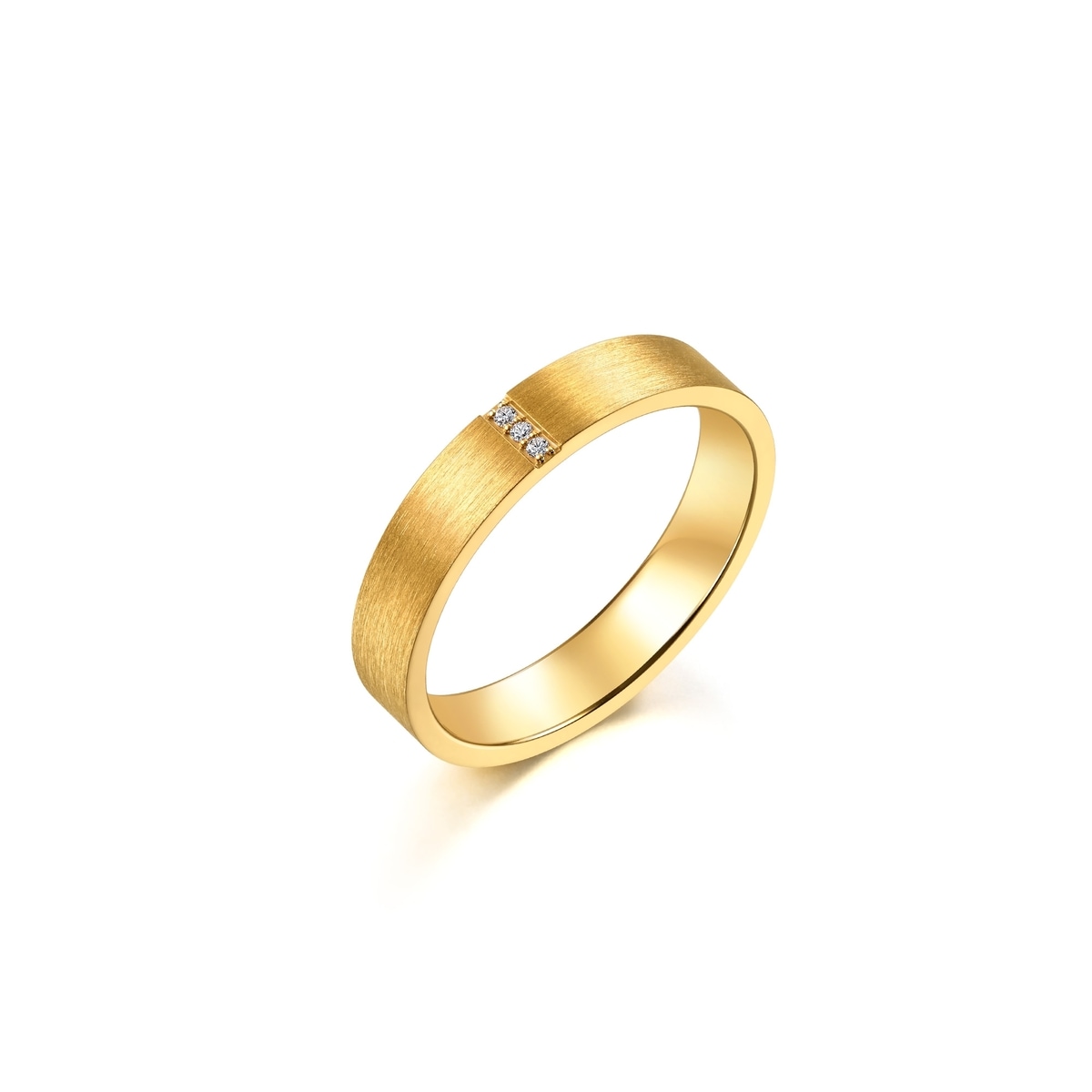 Chow Sang Sang - This gold ring is crafted with hard solid gold technique, resulting in its delicate design.The ring band combines square elements and features a brushed finish, along with diamond adornments. DIY customization allowing you to create your unique gold ring.