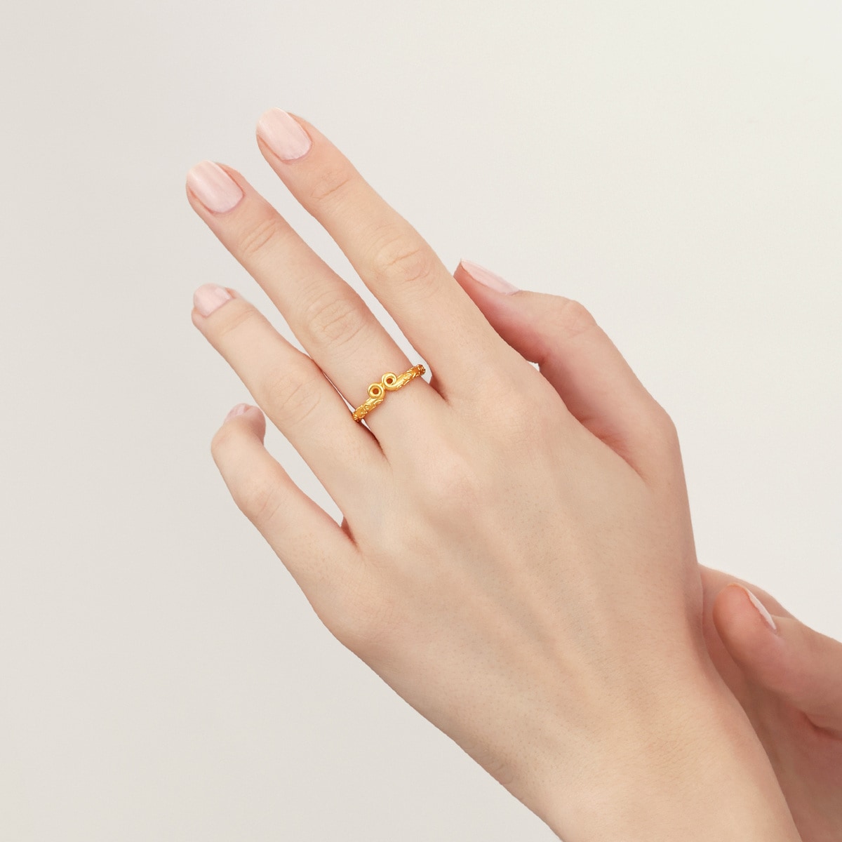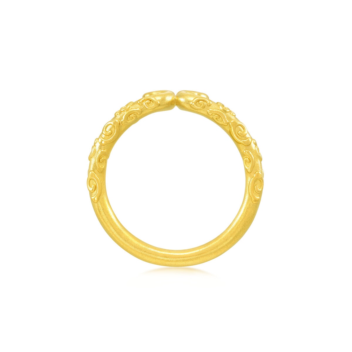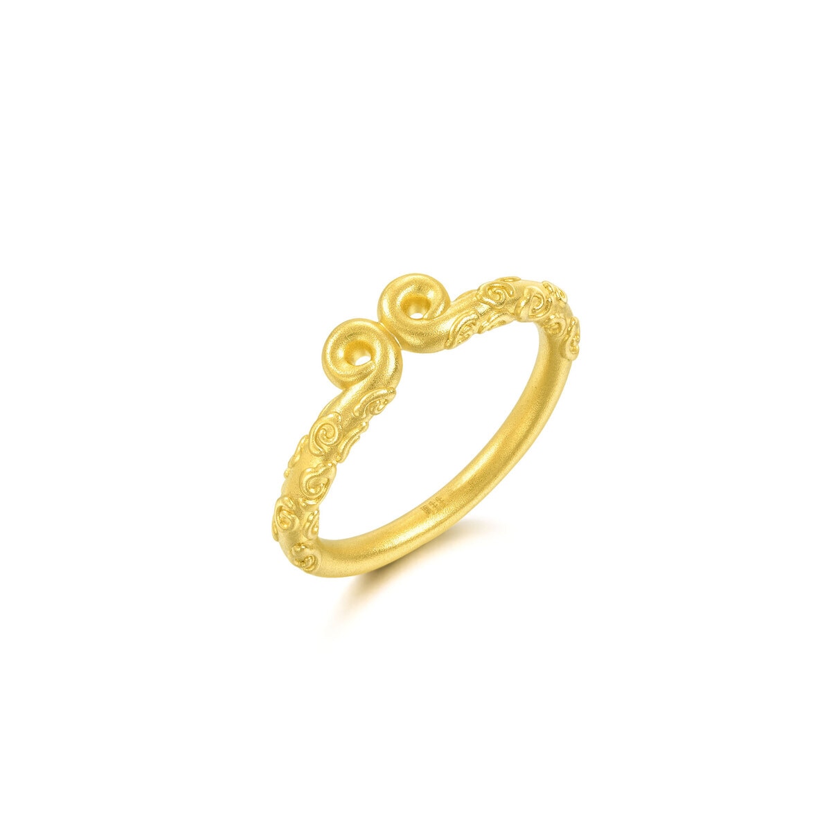 Inspired by the golden fillet of Monkey King, the gold ring reinterprets a close, eternal partnership in an entwining design. The auspicious clouds and electroforming technique are bringing multiple blessings to lovers.