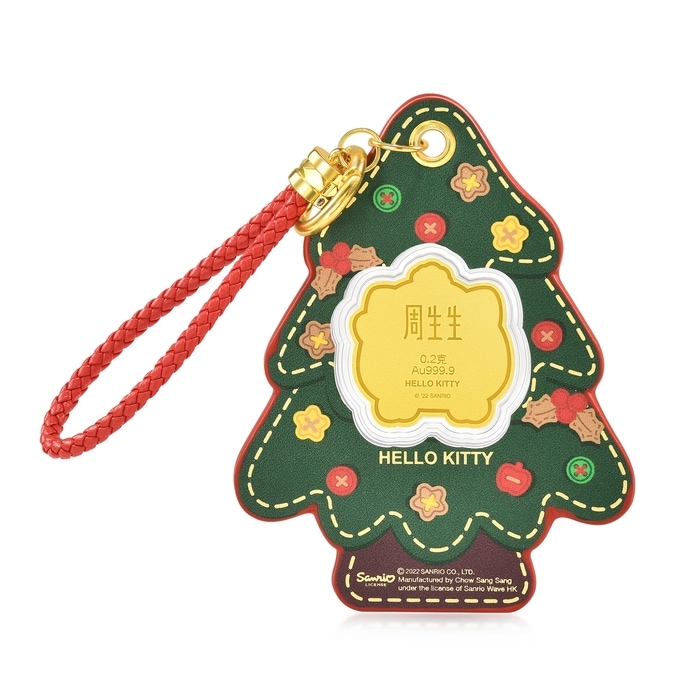 周生生足金金片以聖誕造型的《Sanrio characters》為主題,設計採用Sanrio可愛卡通角色,融入經典聖誕元素,結合光面與砂面處理工藝,突顯豐富色彩與層次。金片設計別具巧思,內卡可分拆作聖誕掛飾或日常吊飾,極致繽紛奪目,洋溢濃厚節日氣氛。