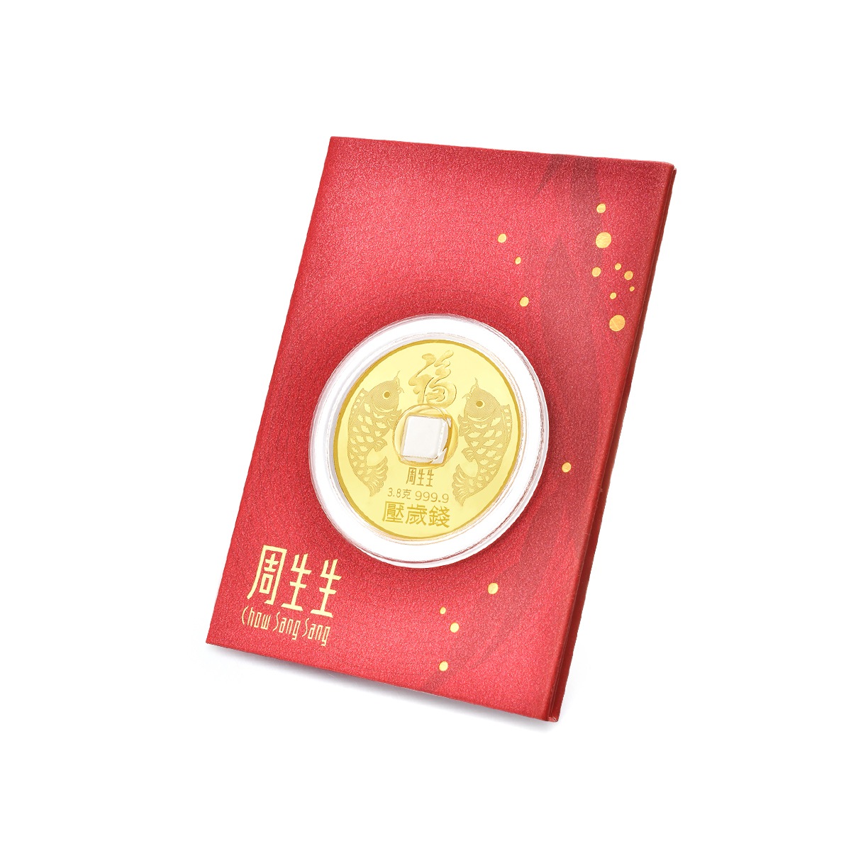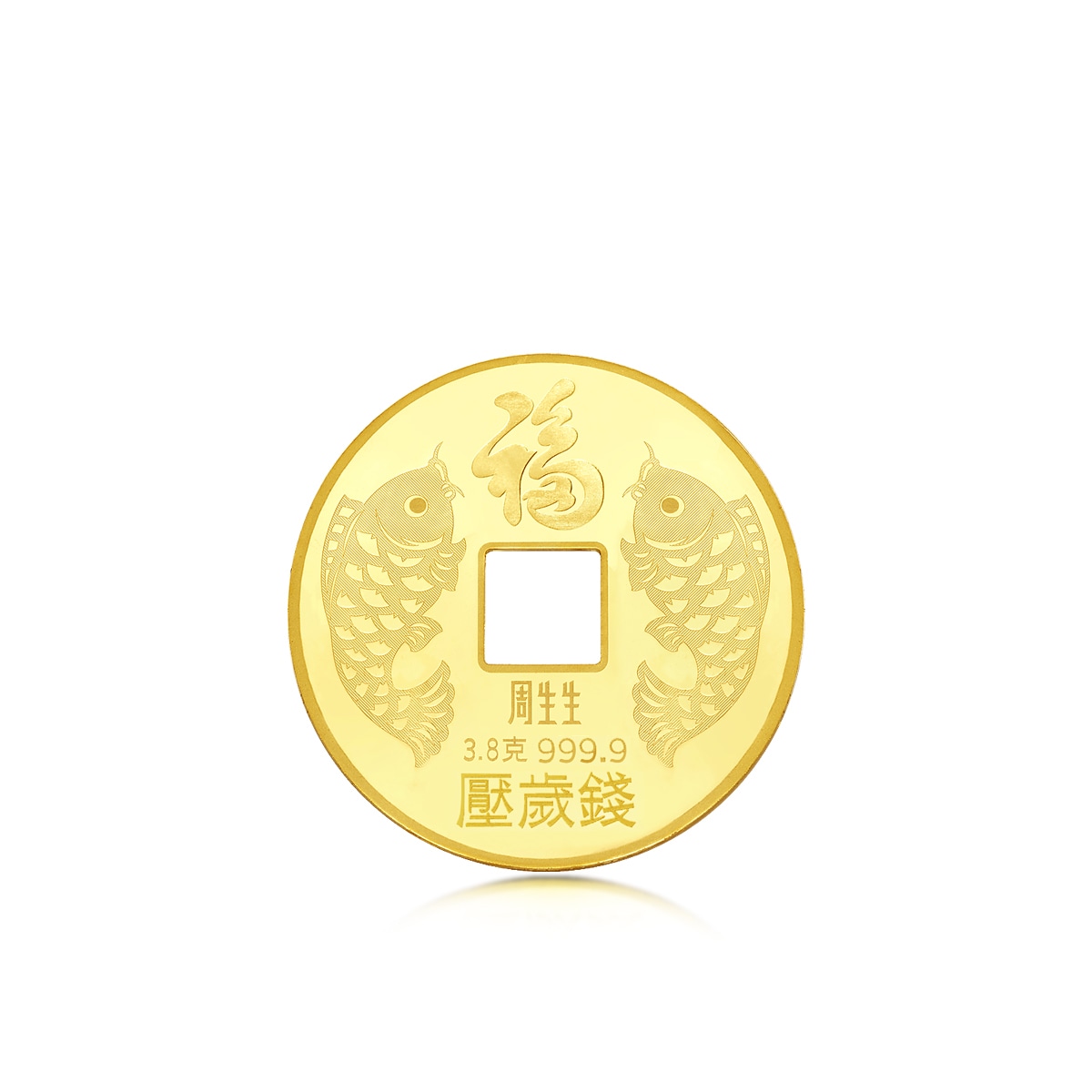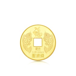 The tradition of "new-year lucky money" is a prevailing Chinese custom. Made of 999.9 pure gold, the front of this new-year lucky coin is engraved with the bless-invoking carp symbol, matched with eight "ruyi" (scepters) carved at the back, accentuating the luxurious delicacy of this talisman conferred by the seniors.