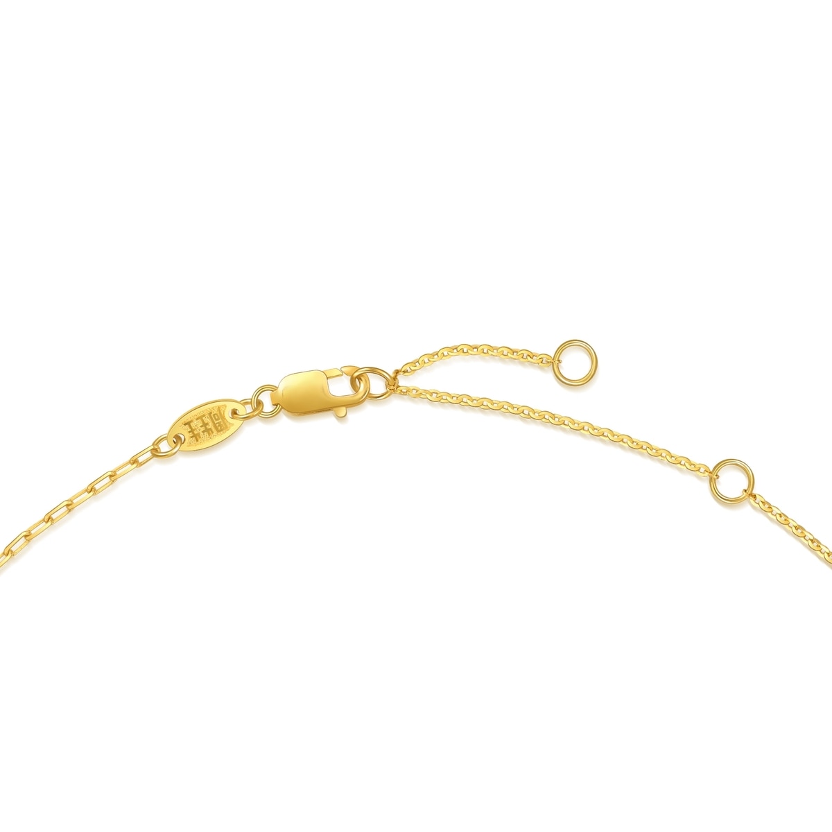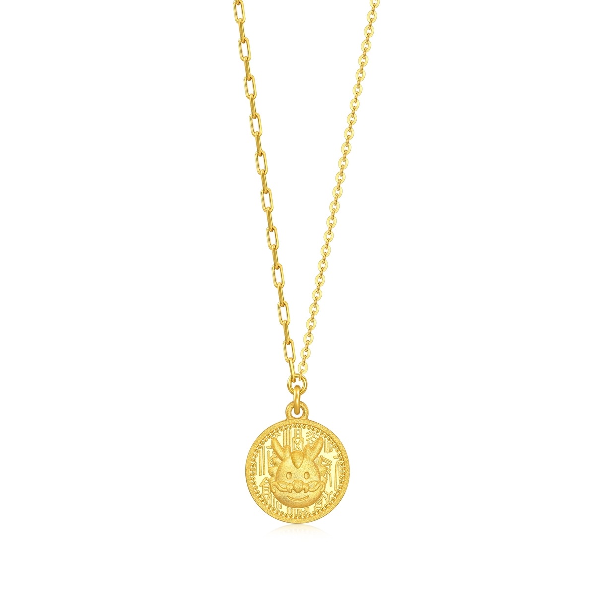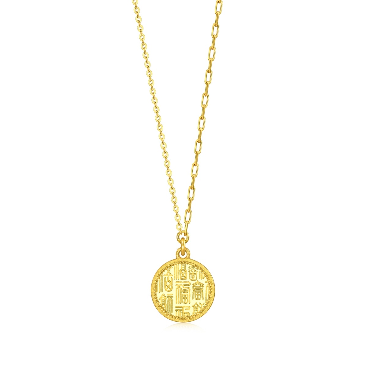 Chow Sang Sang - This gold necklace combines dragon and gold coins, crafted using mold casting technique to create its exquisite appearance. The back of the pendant is engraved with the hidden pattern of hundred blessings, symbolizing luck and blessings.