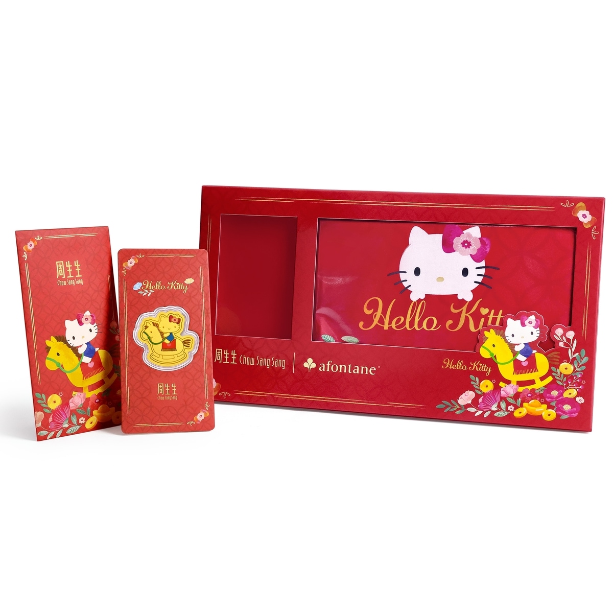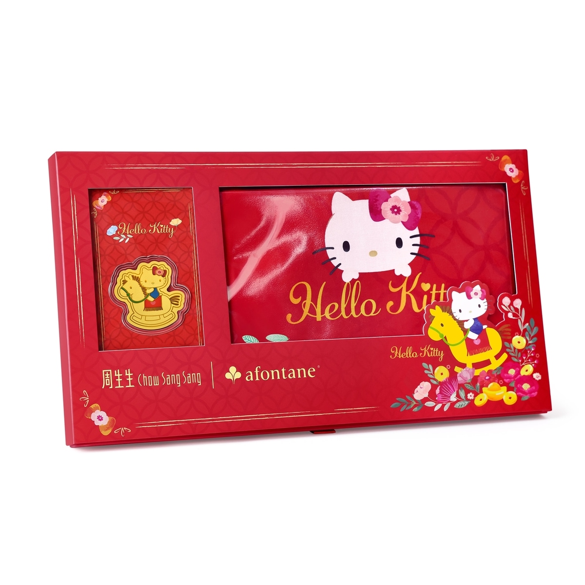 Chow Sang Sang - The lucky gold ingot with pillowcase gift set features Sanrio's popular character Hello Kitty. To preserve the tradition of giving New Year lucky money, the gift set additionally includes an exclusive edition Hello Kitty pillowcase. The gold ingot specially uses Colour Coating to adorably depict Hello Kitty riding a lucky little horse, symbolizing success and prosperity in the new year. Let Hello Kitty to be your bedtime companion, while also presenting traditional blessings in a more ceremonial and delightful way.