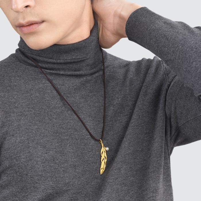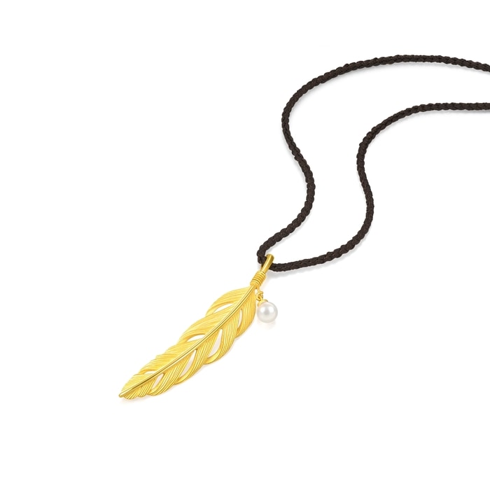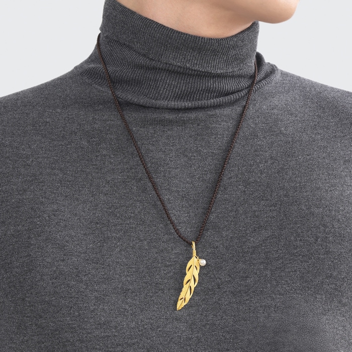 Inspired by feather of Cupid, this gold necklace with a pearl signifies protection from the god of love.