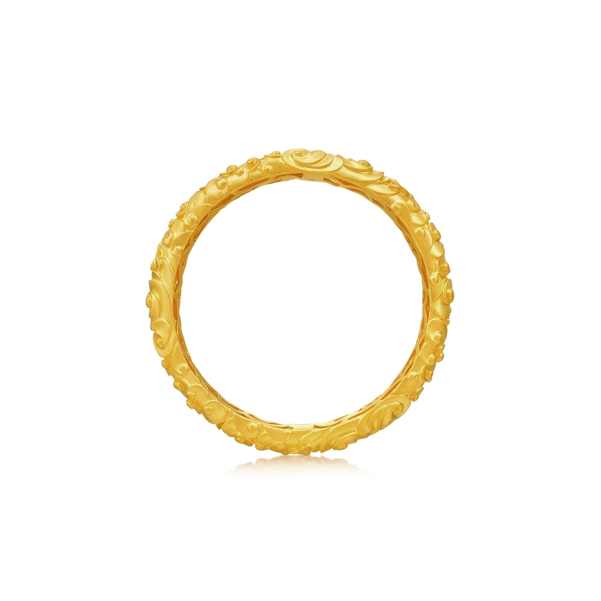 Chow Sang Sang - Forged in precious ancient gold, the surface of this bangle is marked by delicate matte surface, paying tribute to Chinese tradition as well as exuding an air of Oriental charm. This bangle is engraved with “bamboo” and “bat” and masterfully embossed with auspicious cloud pattern, signifying auspiciousness hovers above you to bring you protection at all times.