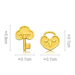 A fun pair of mismatched earrings with a heart lock and fortune key, bringing everlasting happiness to the sweet couple.