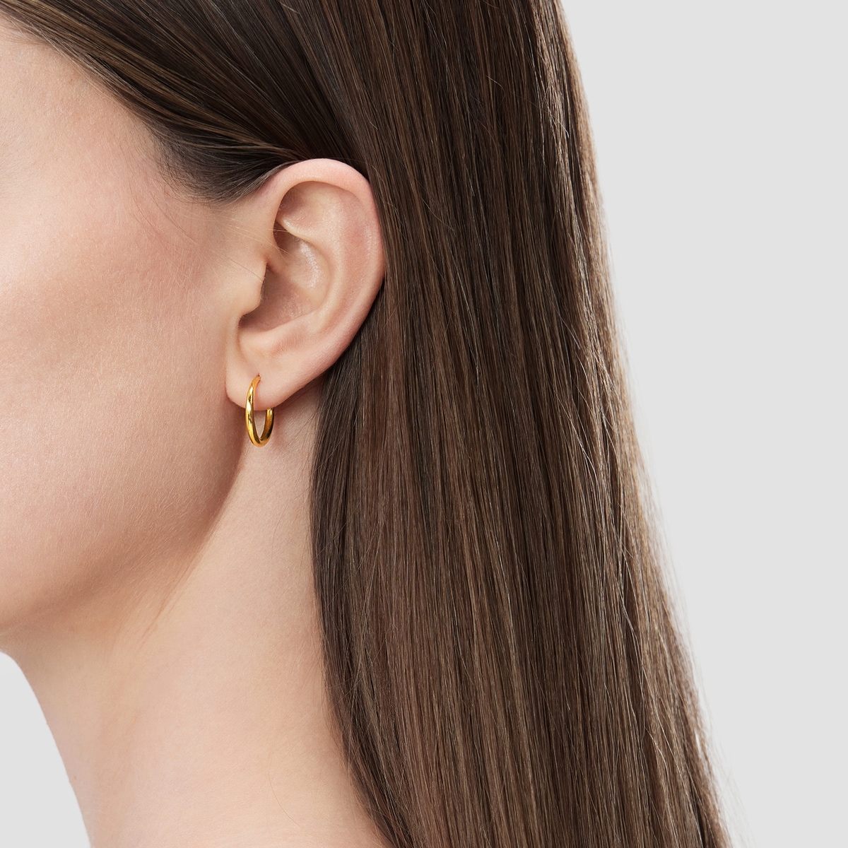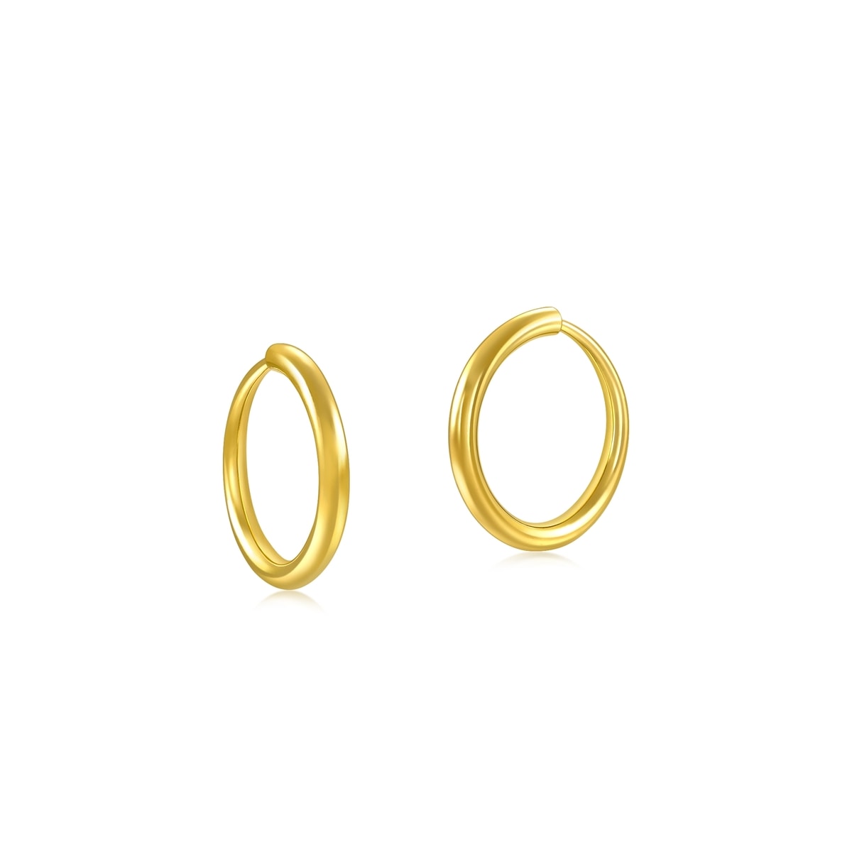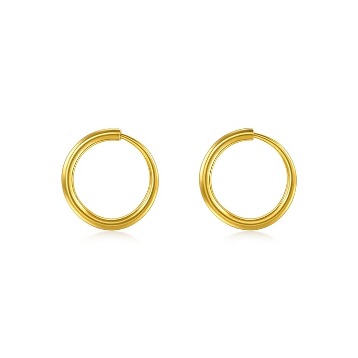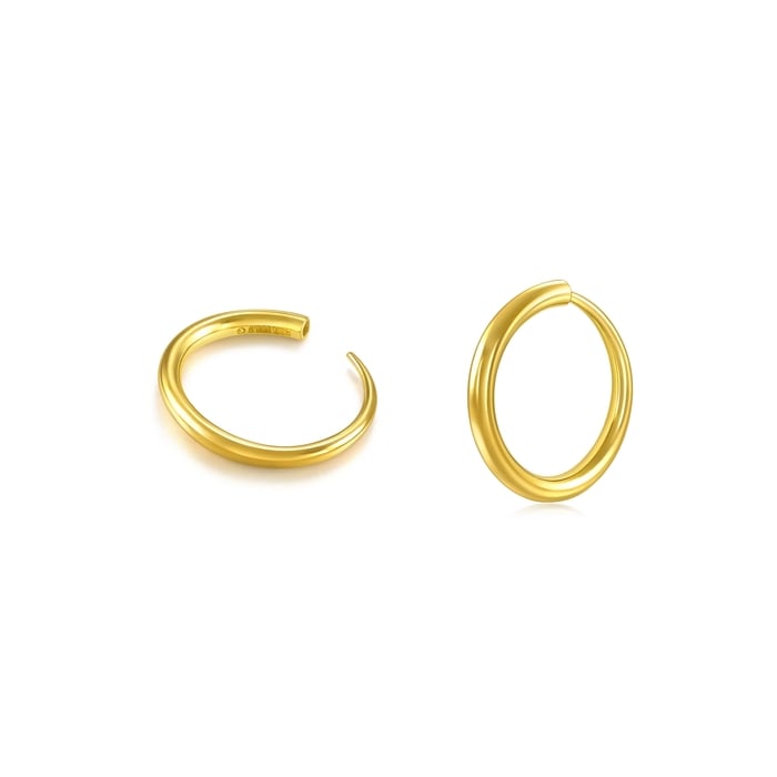 足金耳環採用經典的圈環造型,隱藏式卡扣設計,佩戴倍感舒適,線條簡潔俐落,打造永不過時的雋永風格。