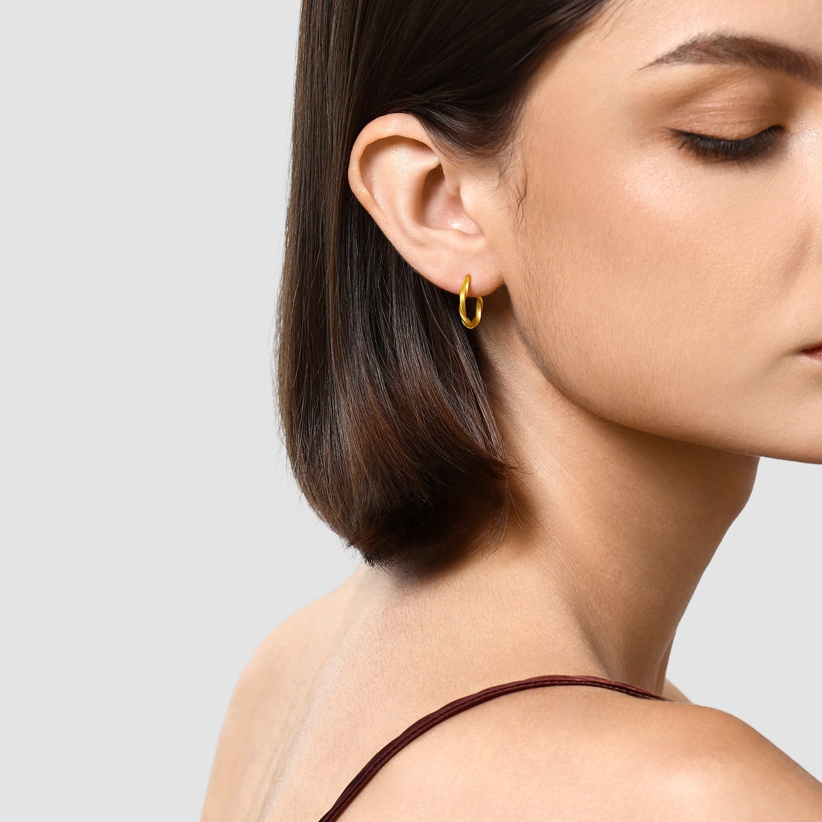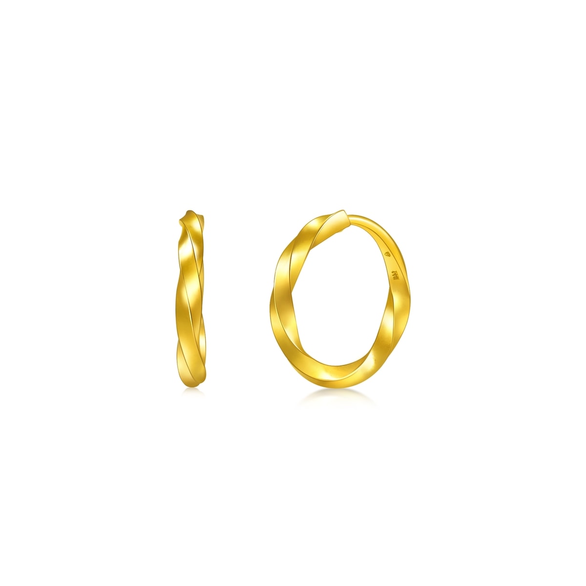 Chow Sang Sang - Crafted with the Hard Solid Gold Technique, these gold earrings blend a distinctive twist with modern hoops and fluid lines. A minimalist design embodies contemporary elegance, complementing everyday ensembles. Diameter: 7.7mm.