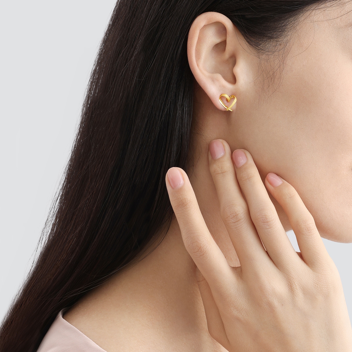輕便優雅的黃金心形耳環,簡潔的線條,適合日常佩戴。