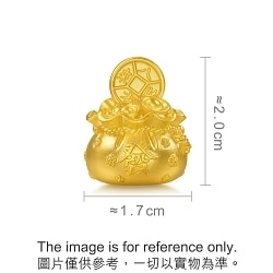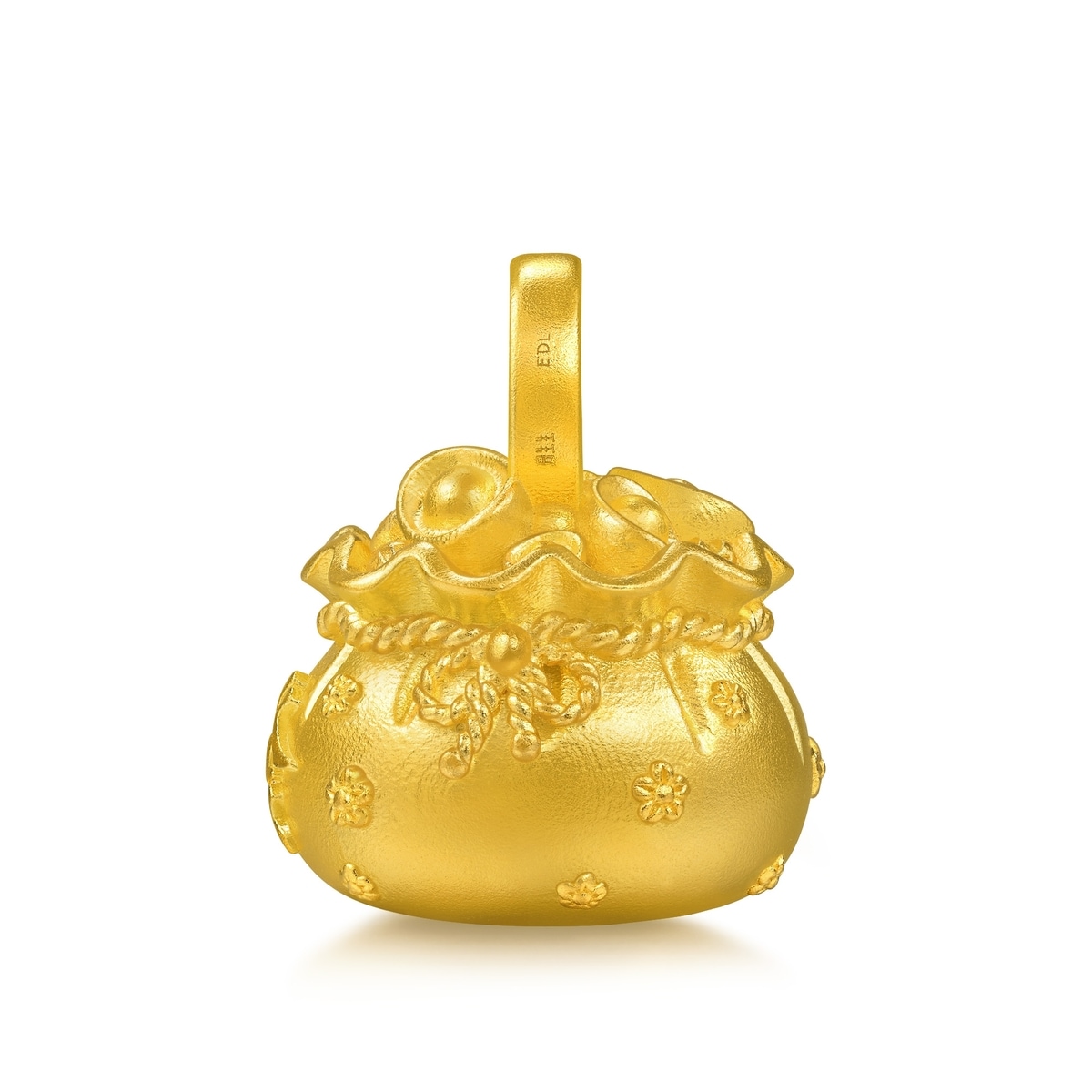 Chow Sang Sang - This exquisite miniature gold fortune pouch crafted with Traditional Goldsmith Techniques, is a treasured collectible. Adorned with coins and ingots, it symbolises prosperity and abundance, embodying the auspicious promise of wealth and fortune.