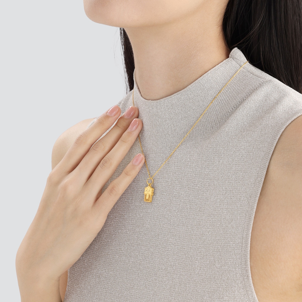 Chow Sang Sang - This gold pendant features a lifelike lion head design inspired by the "Lion Dance and Auspicious Greenery" element. It is crafted using a mold casting technique to create its exquisite appearance, symbolizing wealth and good fortune.